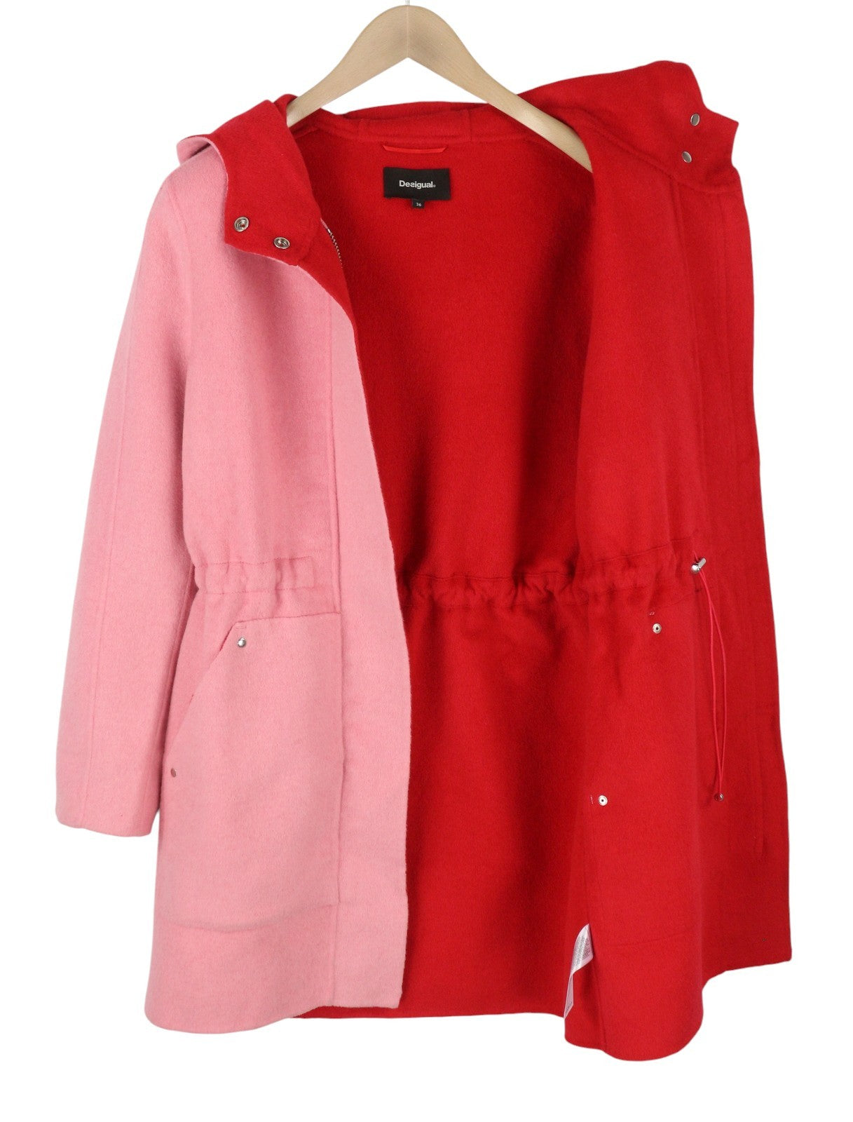 DESIGUAL Lenzy Women Coat EU36 Pink Wool Blend Drawstring Waist Hooded Mid