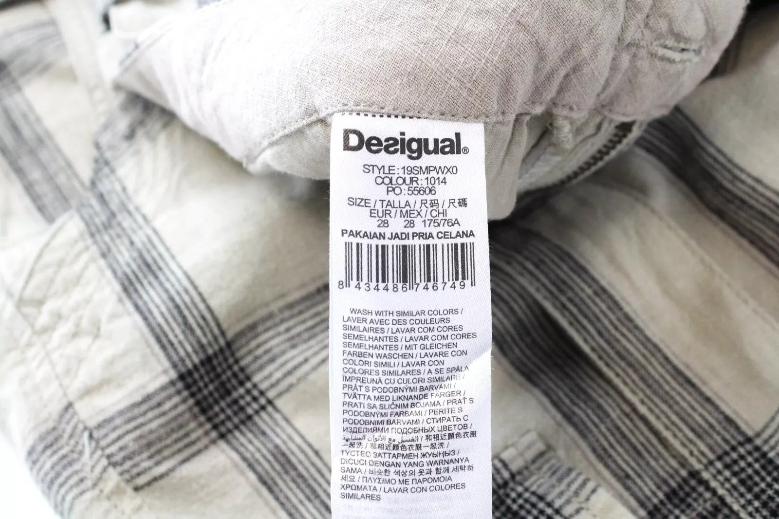 DESIGUAL Marc Men's Shorts Brown Checked Linen Blend UK10 Multi Pocket Cargo