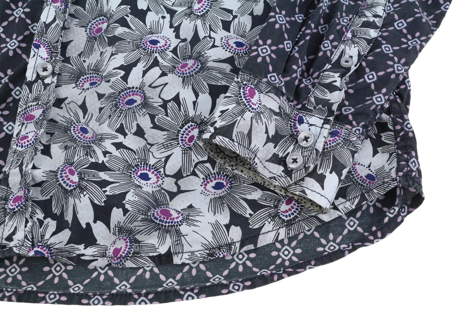 DESIGUAL vyriški marškiniai L, laisvalaikio, raštuoti, sagomis užsegami, platėjančios apykaklės kišenės, įprasto kirpimo