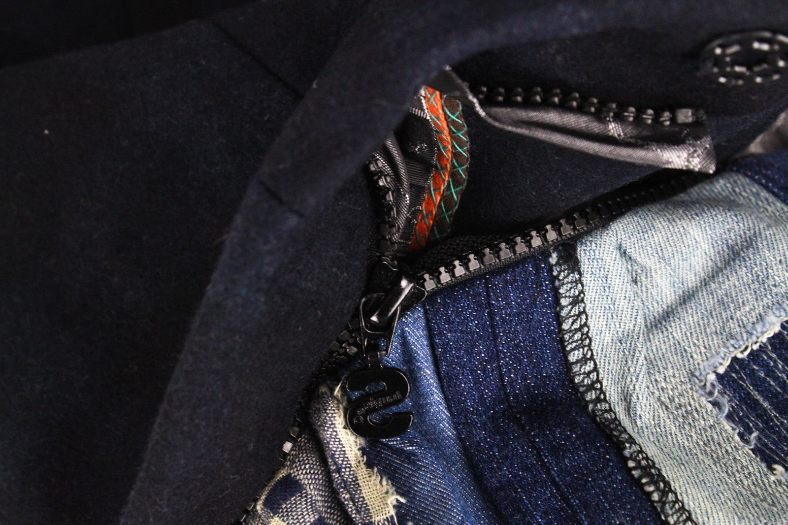 DESIGUAL Snowrobot moteriškas paltas, 40, tamsiai mėlynas, vilnonis, medvilninis, languotas, vieneilis