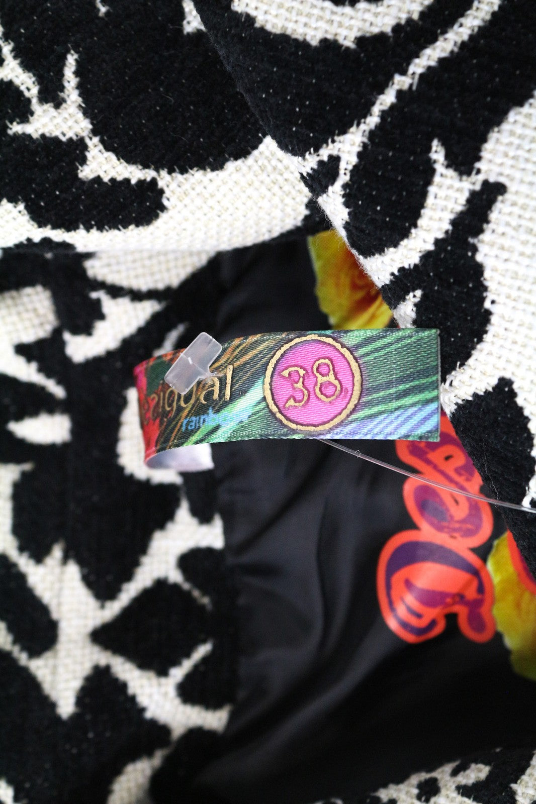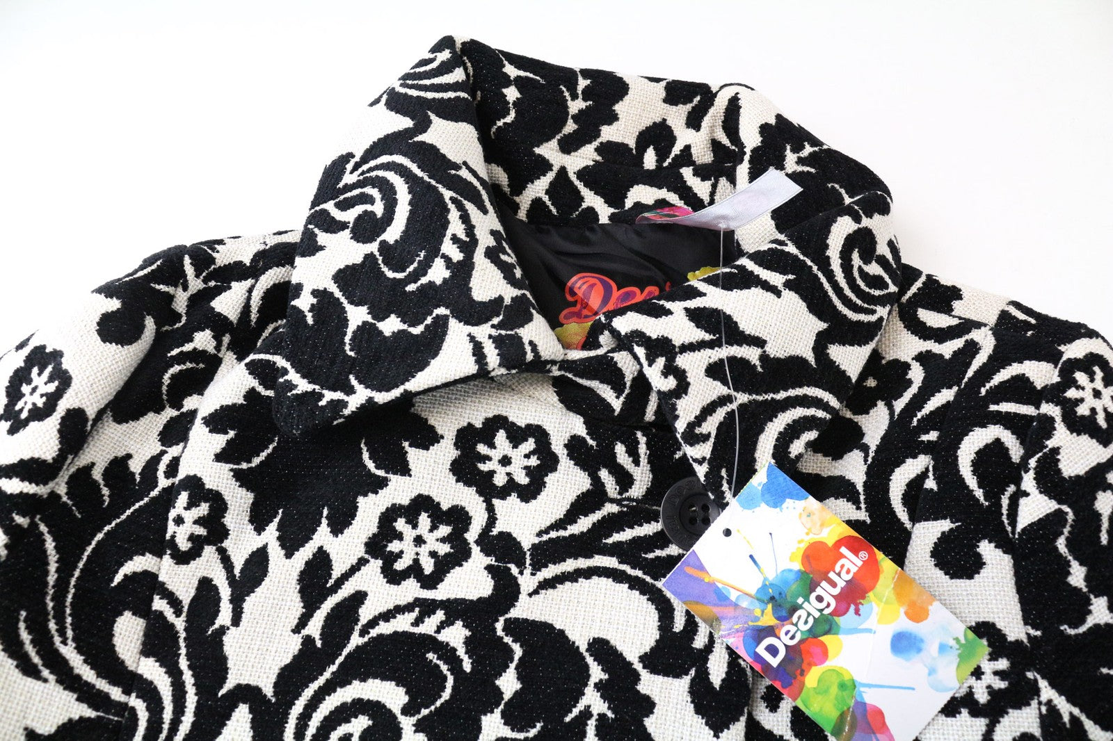 DESIGUAL baltas moteriškas paltas EU38 smėlio spalvos aksominis baroko spalvos žakardo pamušalu medvilnės mišinio