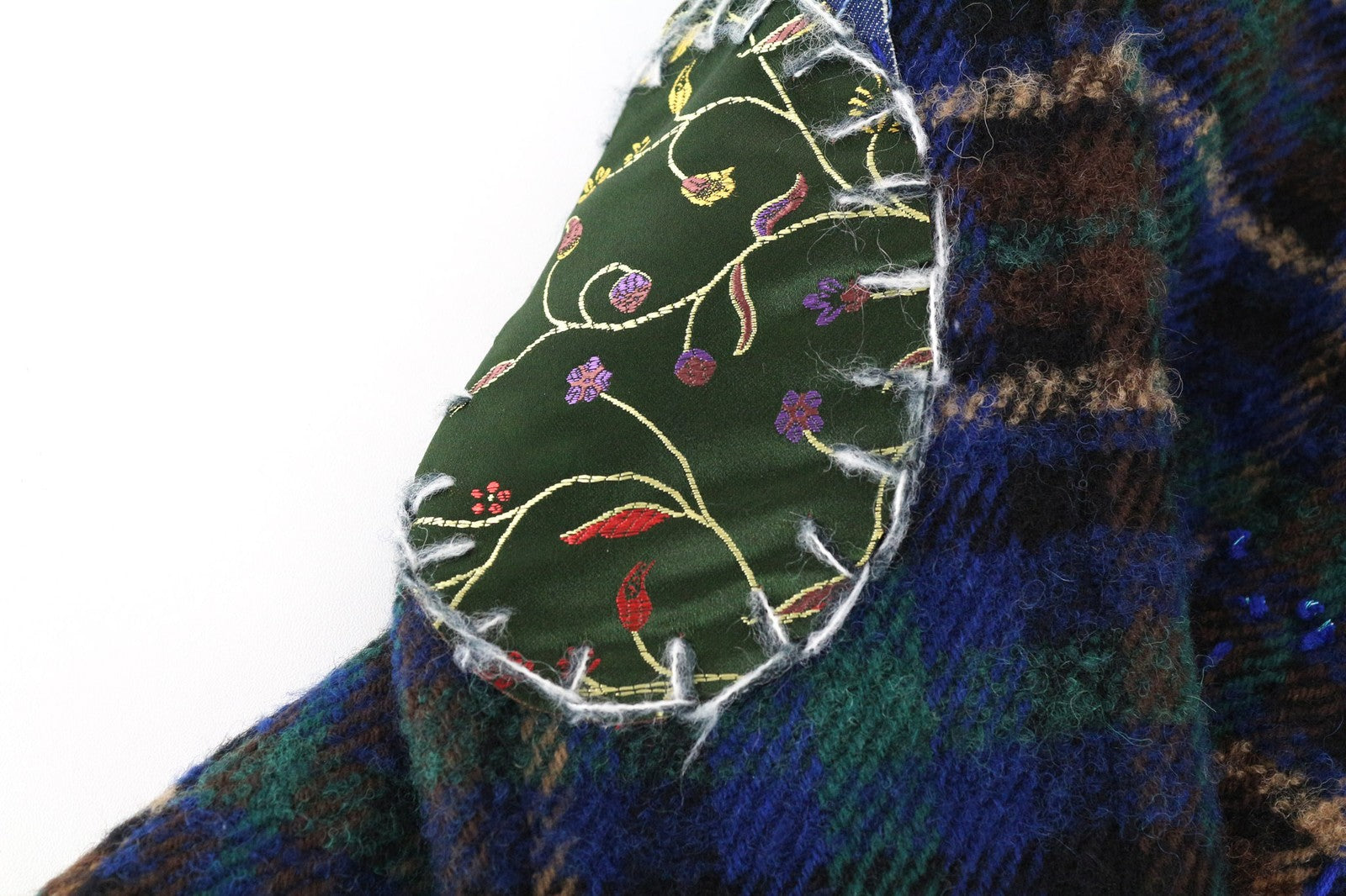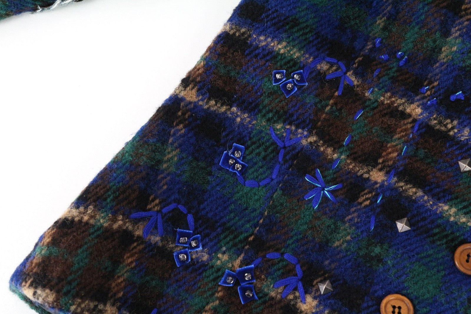 DESIGUAL moteriškas 40 dydžio mėlynas languotas ilgomis rankovėmis vilnos mišinio vienaeilis švarkas