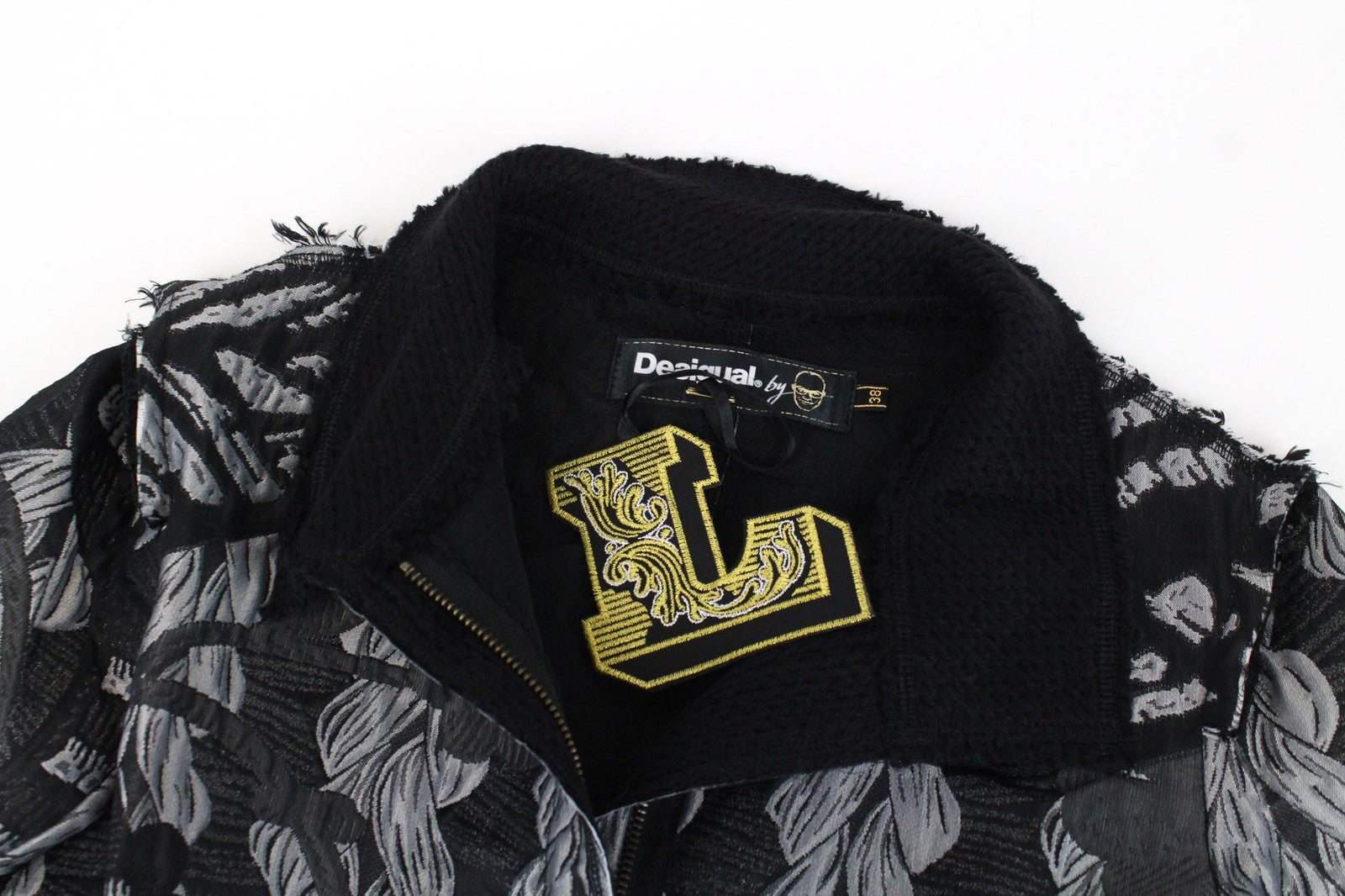 DESIGUAL moteriškas paltas, 38 pilki raštai, vienaeilis, ilgomis rankovėmis, laisvalaikio stiliaus