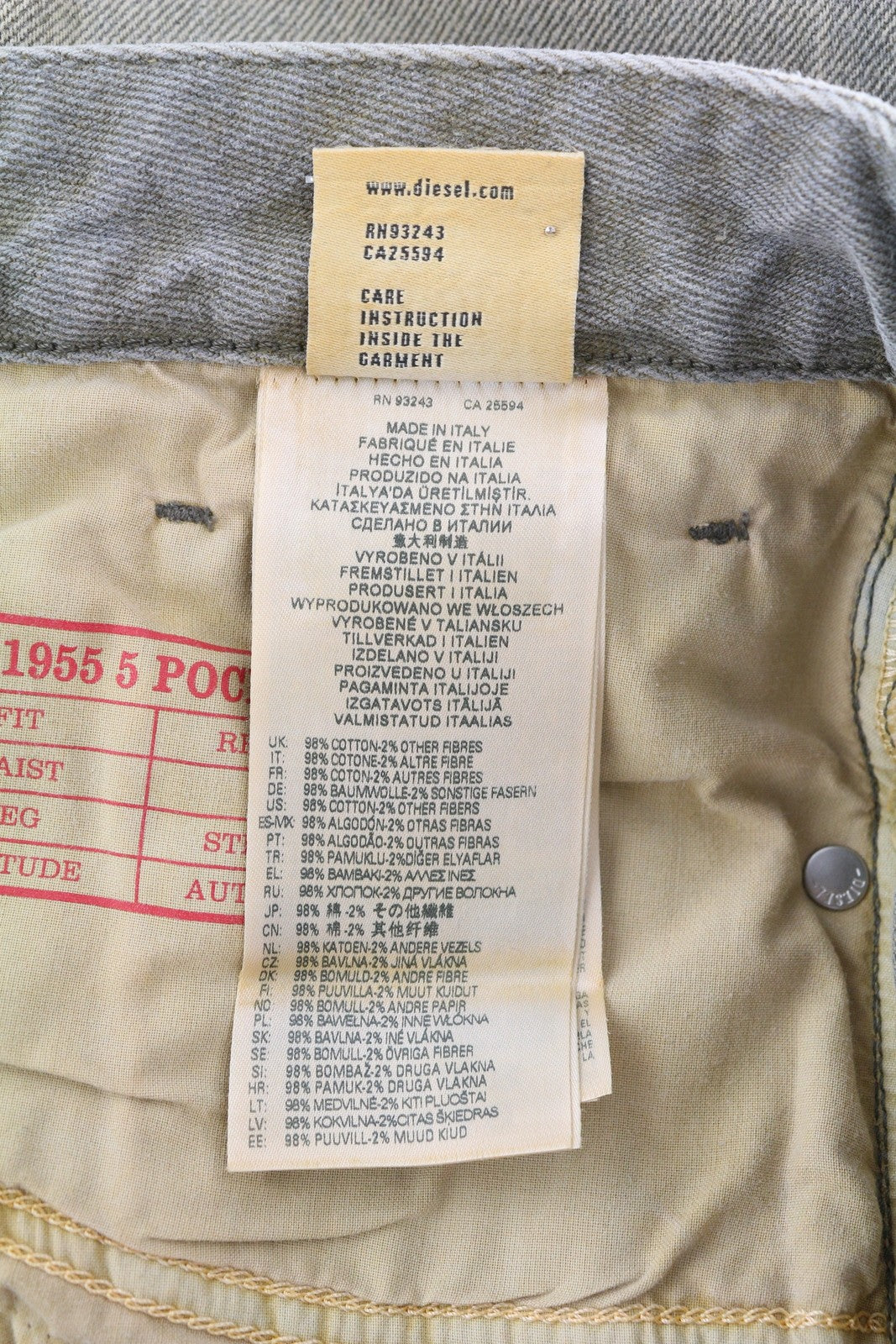 DIESEL 1955 09D87 vyriški džinsai W34/L30 mėlyni sendinto stiliaus, įprasti, tiesūs, aukštu juosmeniu