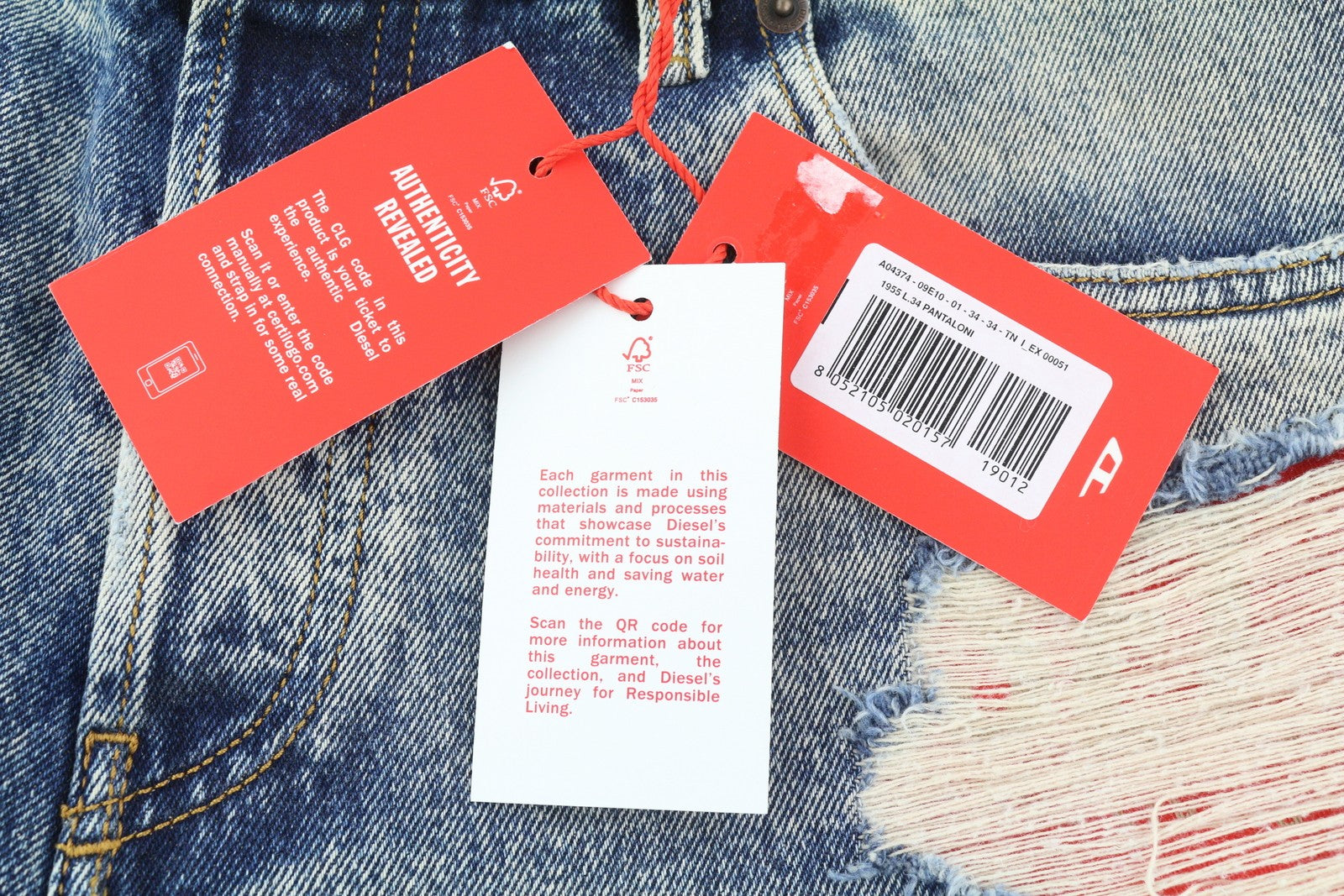 DIESEL 1955 09E10 vyriški džinsai W34/L34 mėlyni, įprasti, tiesūs klešnės, su išsekimu, RRP 375 USD