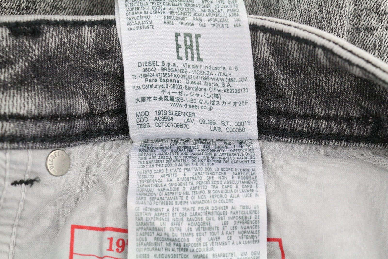DIESEL 1979 Sleenker 09D89 vyriški džinsai W36/L32 tamprūs, aptempti džinsai, pilki, kaina 195 €