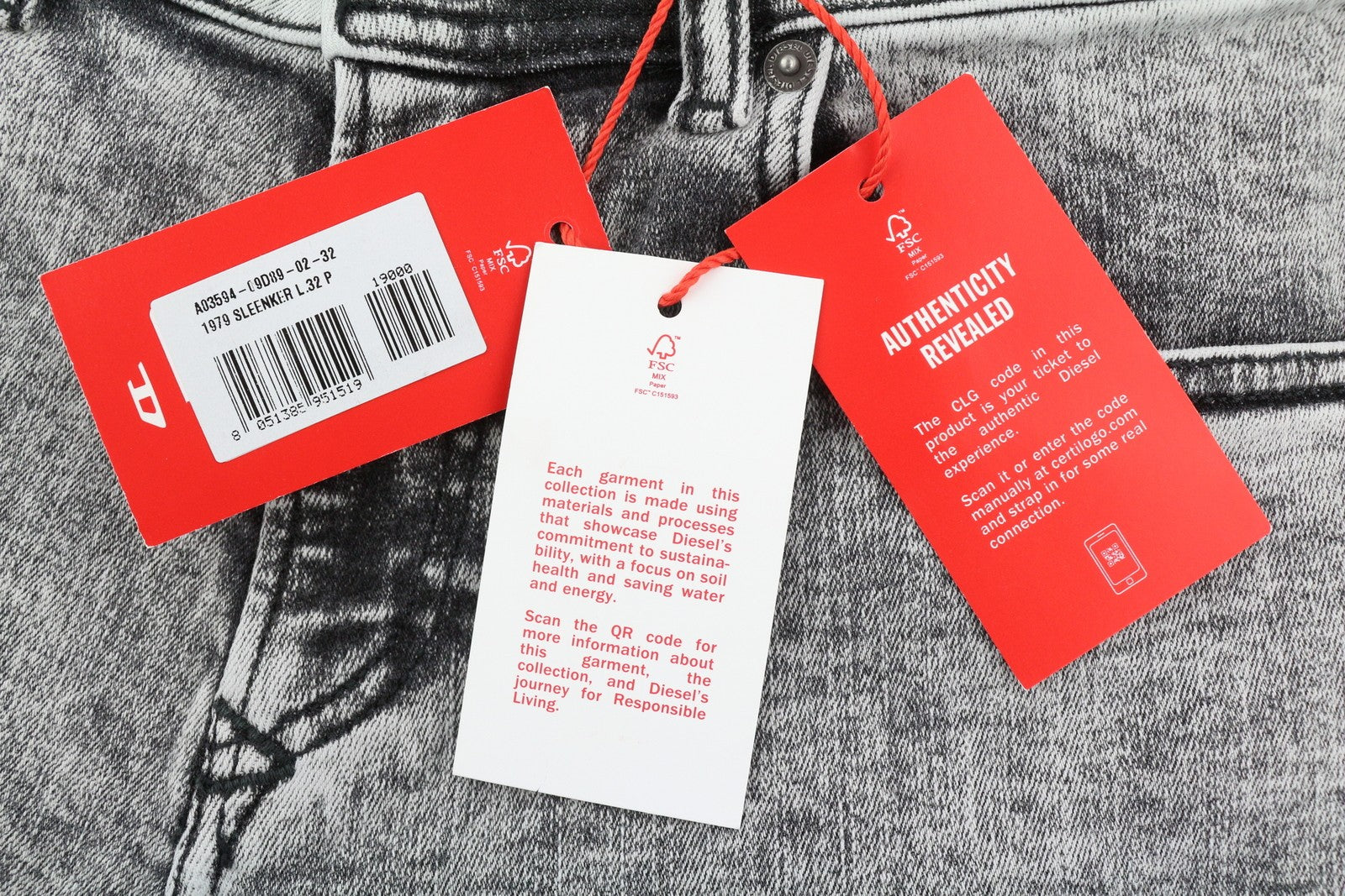 DIESEL 1979 Sleenker 09D89 vyriški džinsai W32/L32 tamprūs, aptempti, pilki, rekomenduojama mažmeninė kaina 195 €