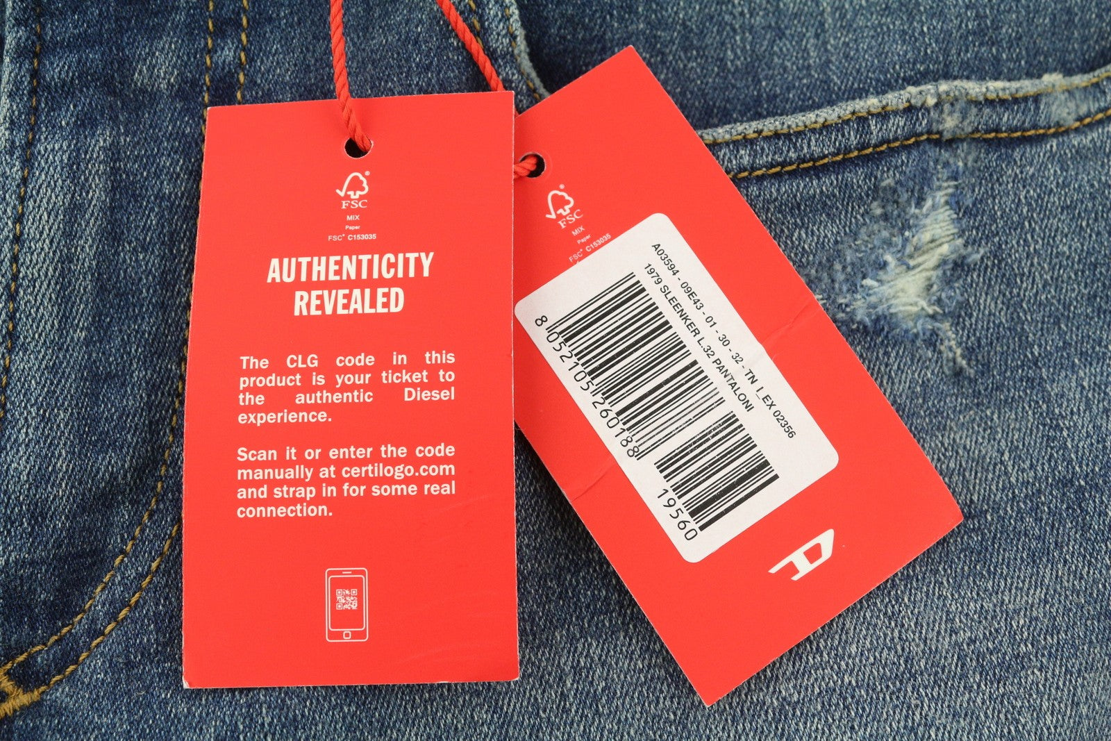 DIESEL 1979 Sleenker 09E43 vyriški džinsai W30/L32 mėlyni aptempti džinsai, rekomenduojama kaina – 225 USD