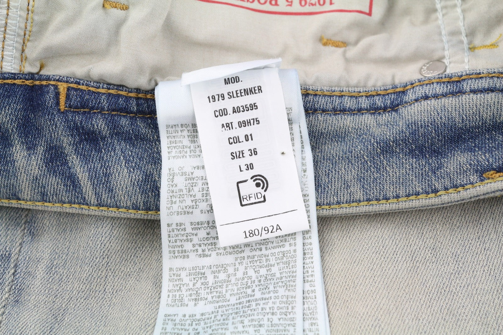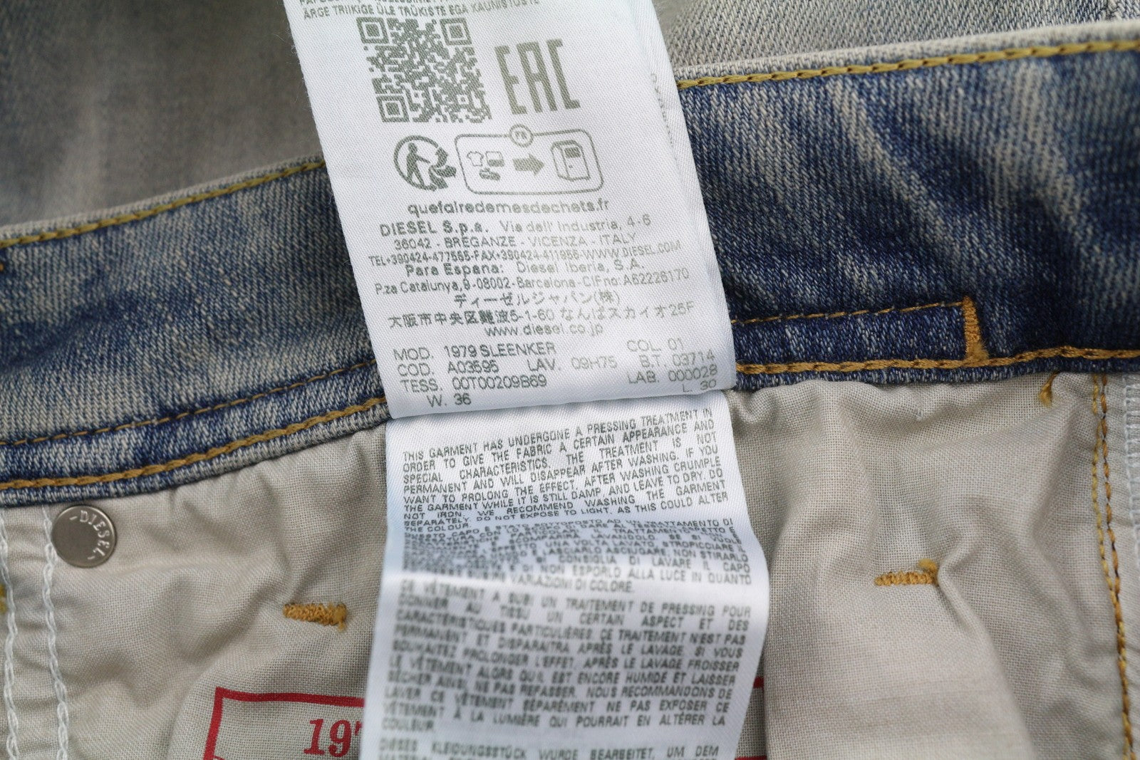 DIESEL 1979 Sleenker 09H75 vyriški džinsai W36/L30 žemo juosmens aptempti, mėlyni, rekomenduojama kaina 295 €