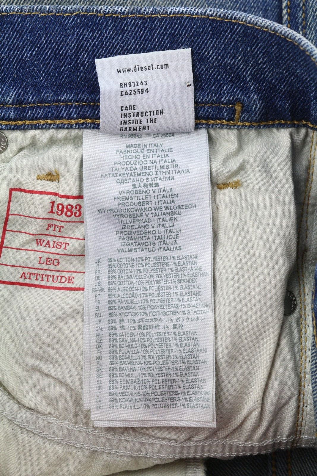 DIESEL 1983 09D82 vyriški džinsai W29/L30 mėlyni, išblukinti, aptempti, aukštu juosmeniu, užtrauktuku.