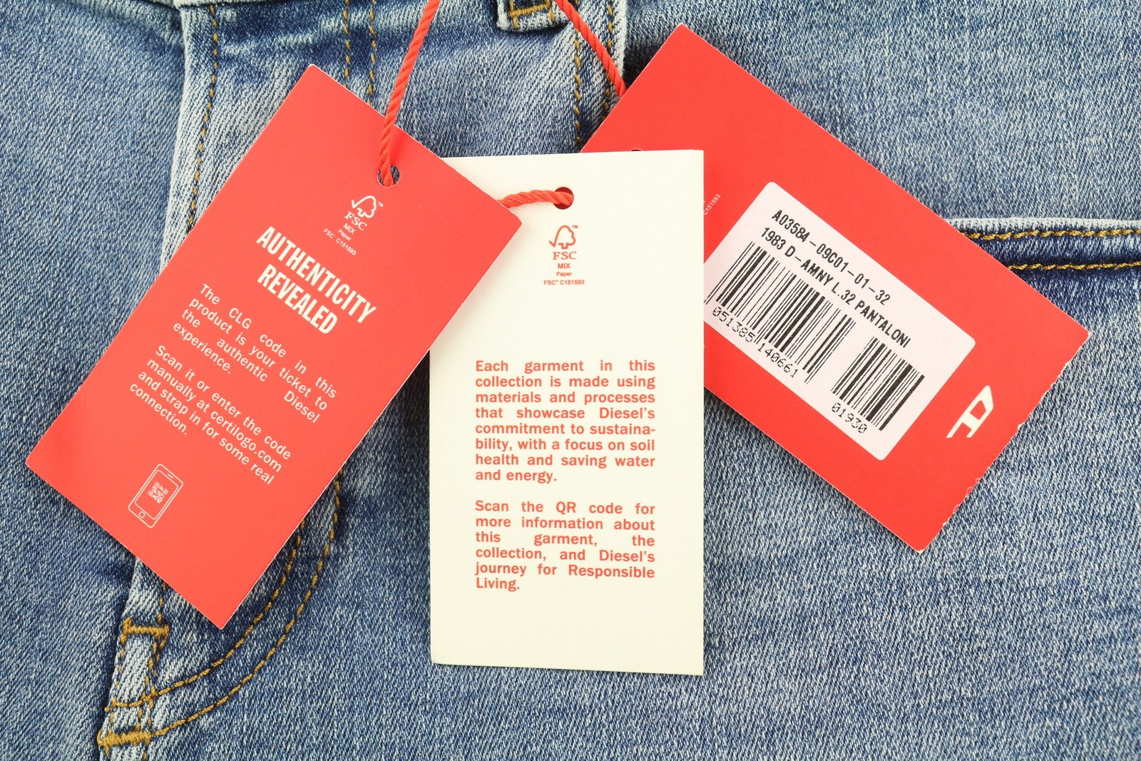 DIESEL 1983 D-AMNY 09C01 vyriški džinsai W32/L32 aukštu juosmeniu, aptempti, mėlyni, RRP195