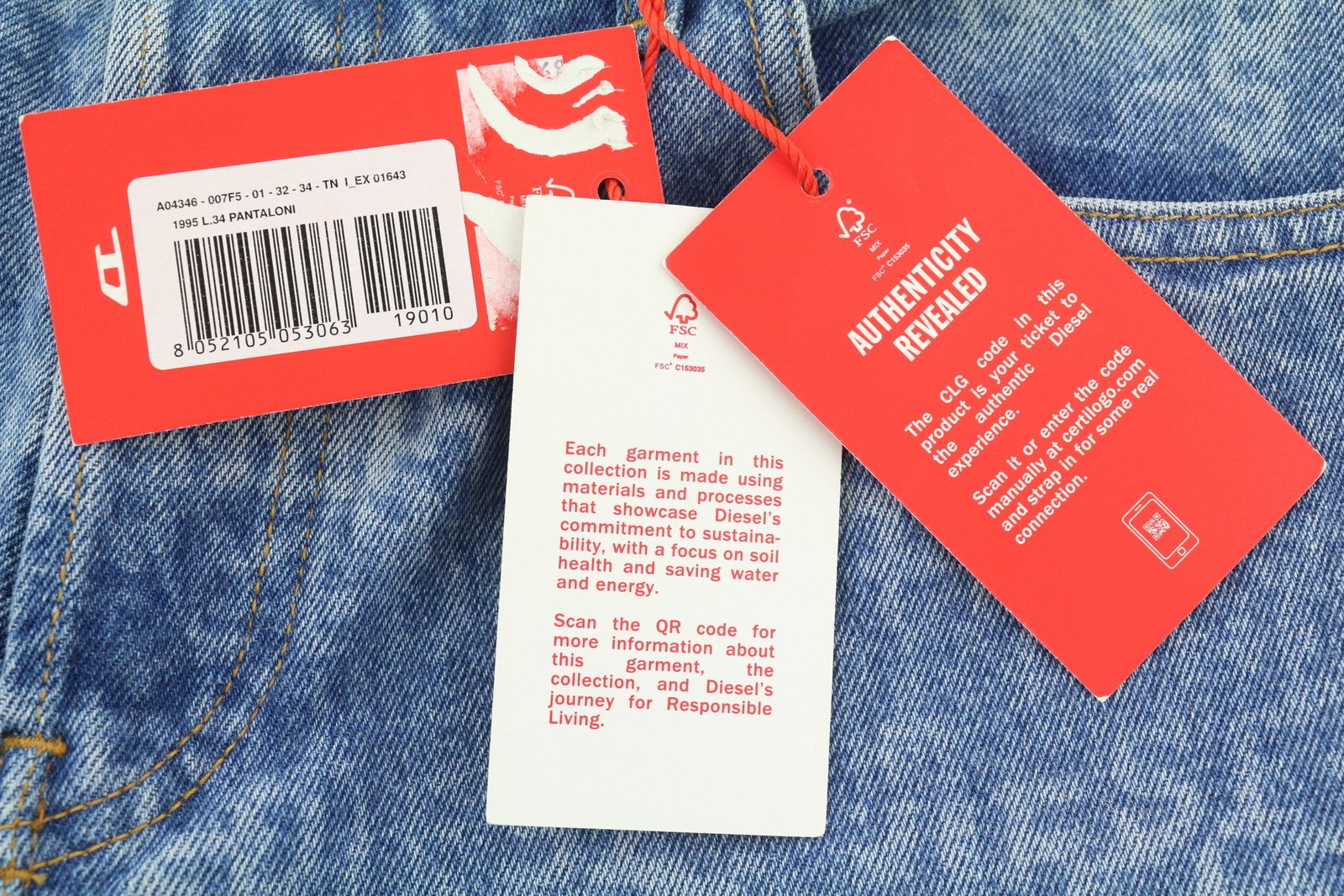 DIESEL 1995 007F5 vyriški džinsai W32/L34, prigludę, tiesaus kirpimo, raštuoti, rekomenduojama mažmeninė kaina – 250 €