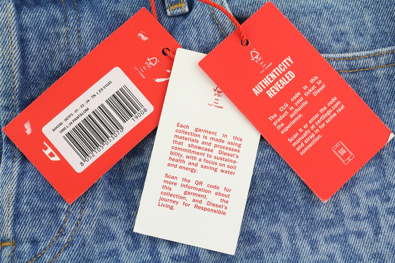 DIESEL 1995 007F5 vyriški džinsai W33/L34, prigludę, tiesaus kirpimo, raštuoti, rekomenduojama mažmeninė kaina – 250 €