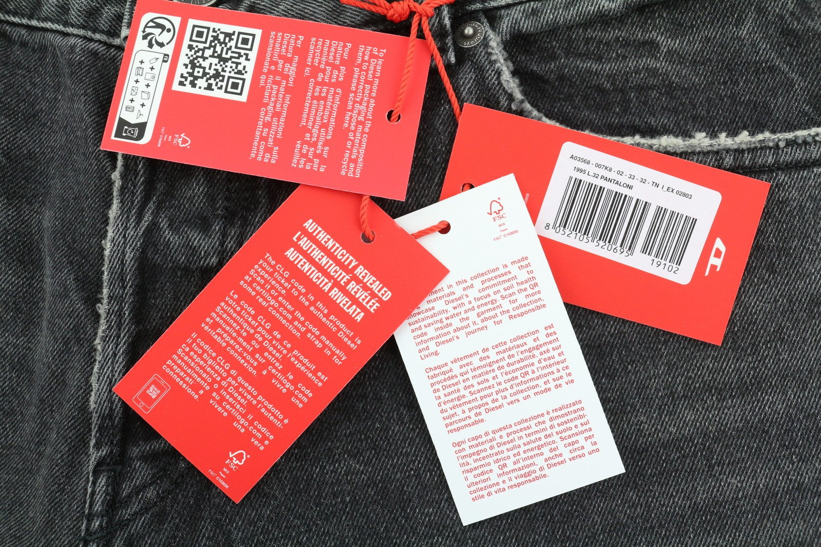 DIESEL 1995 007K8 Men's W33/L32 Slim Straight Grey Distressed Denim RRP195