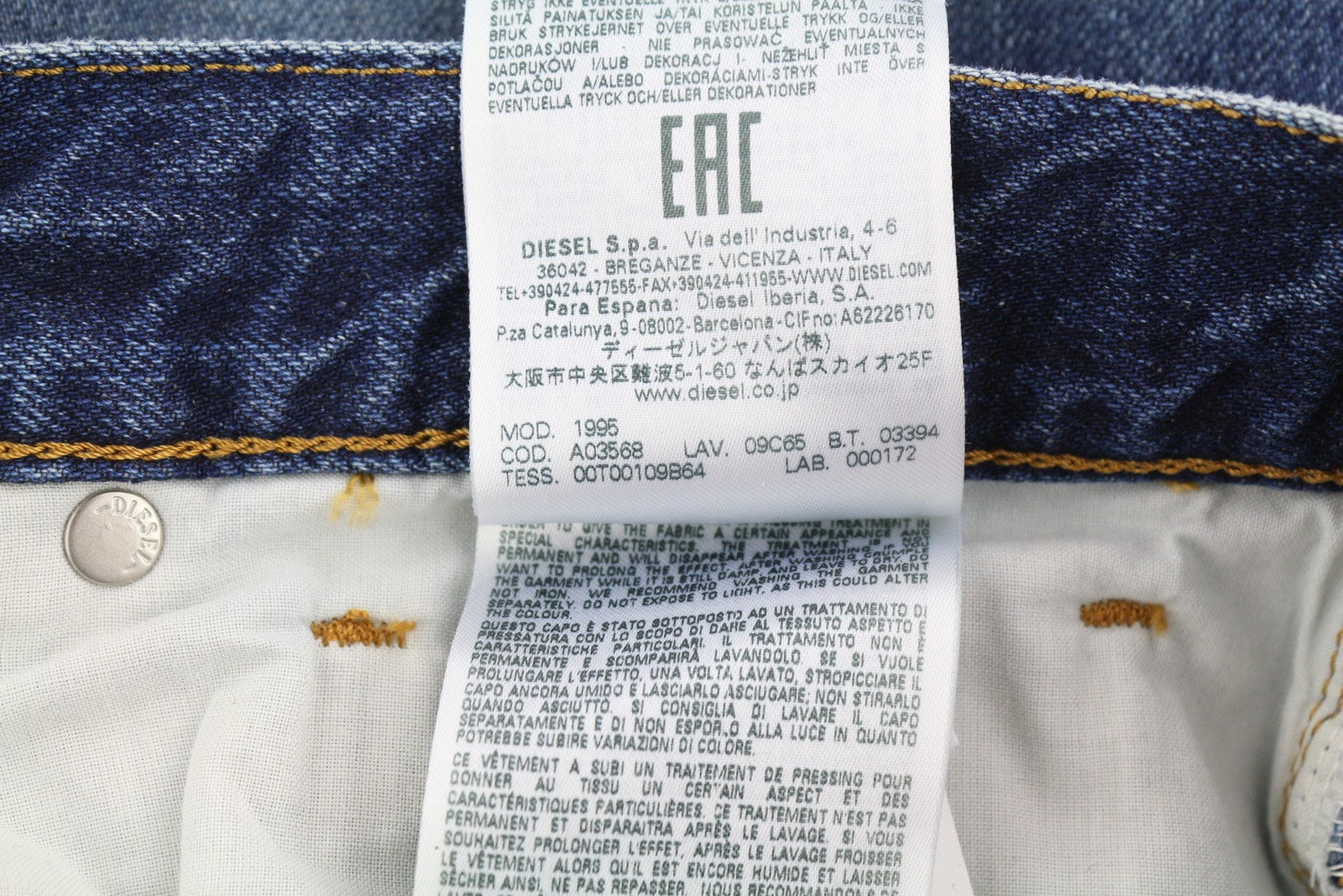 DIESEL 1995 09C65 vyriški džinsai W30/L32 Slim Fit tiesios kojos vidutinio juosmens skalbtos mėlynos spalvos