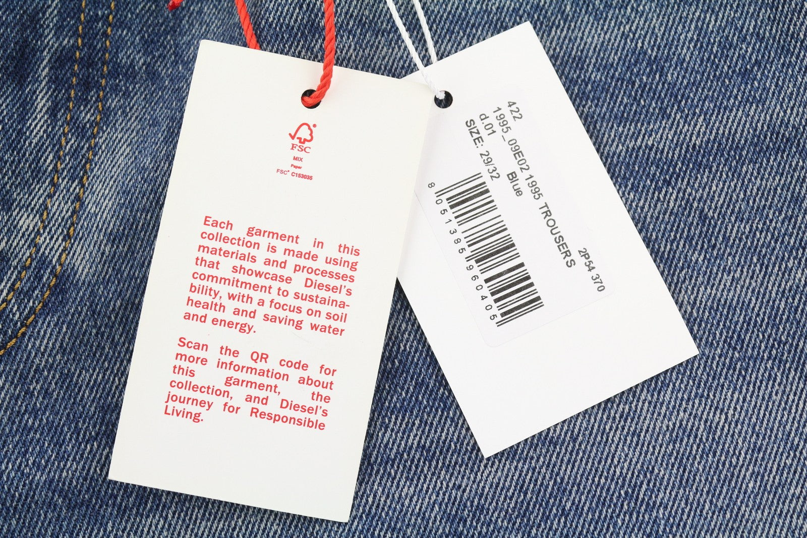 DIESEL 1995 09E02 vyriški džinsai W29/L32 mėlyni, plėšyti, ploni, tiesūs, RRP 375 USD