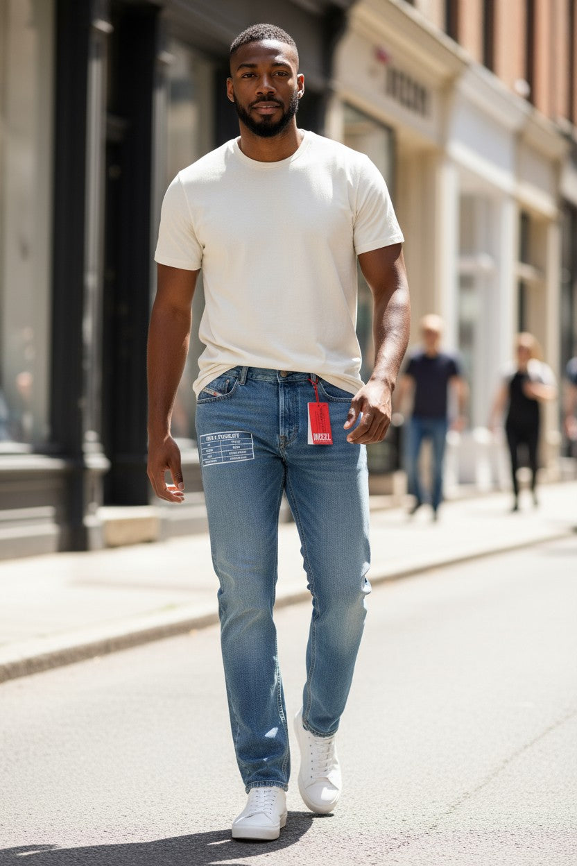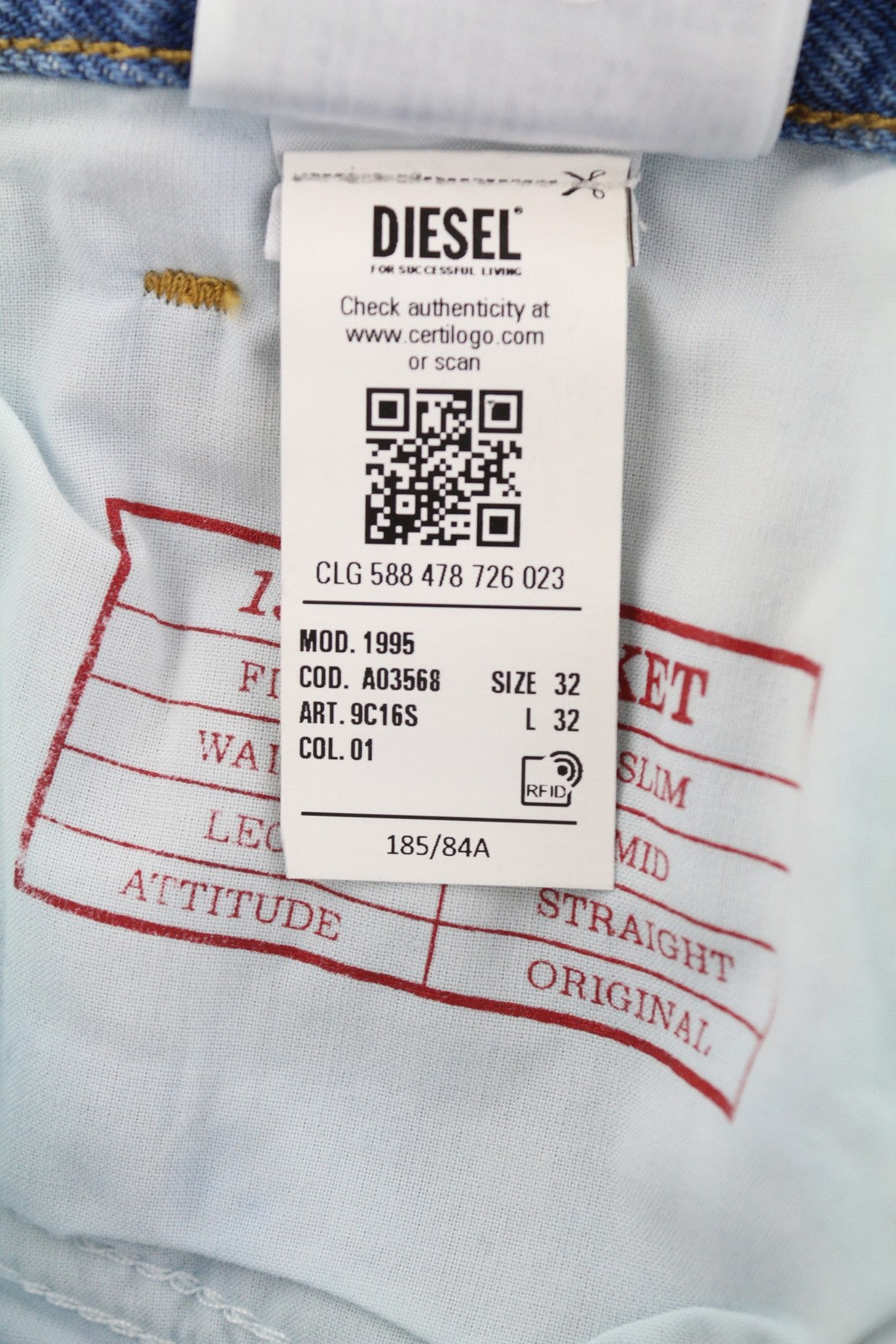 DIESEL 1995 9C16S vyriški džinsai W32/L32 ploni tiesūs klešniai, vidutinio juosmens, skalbtos mėlynos spalvos