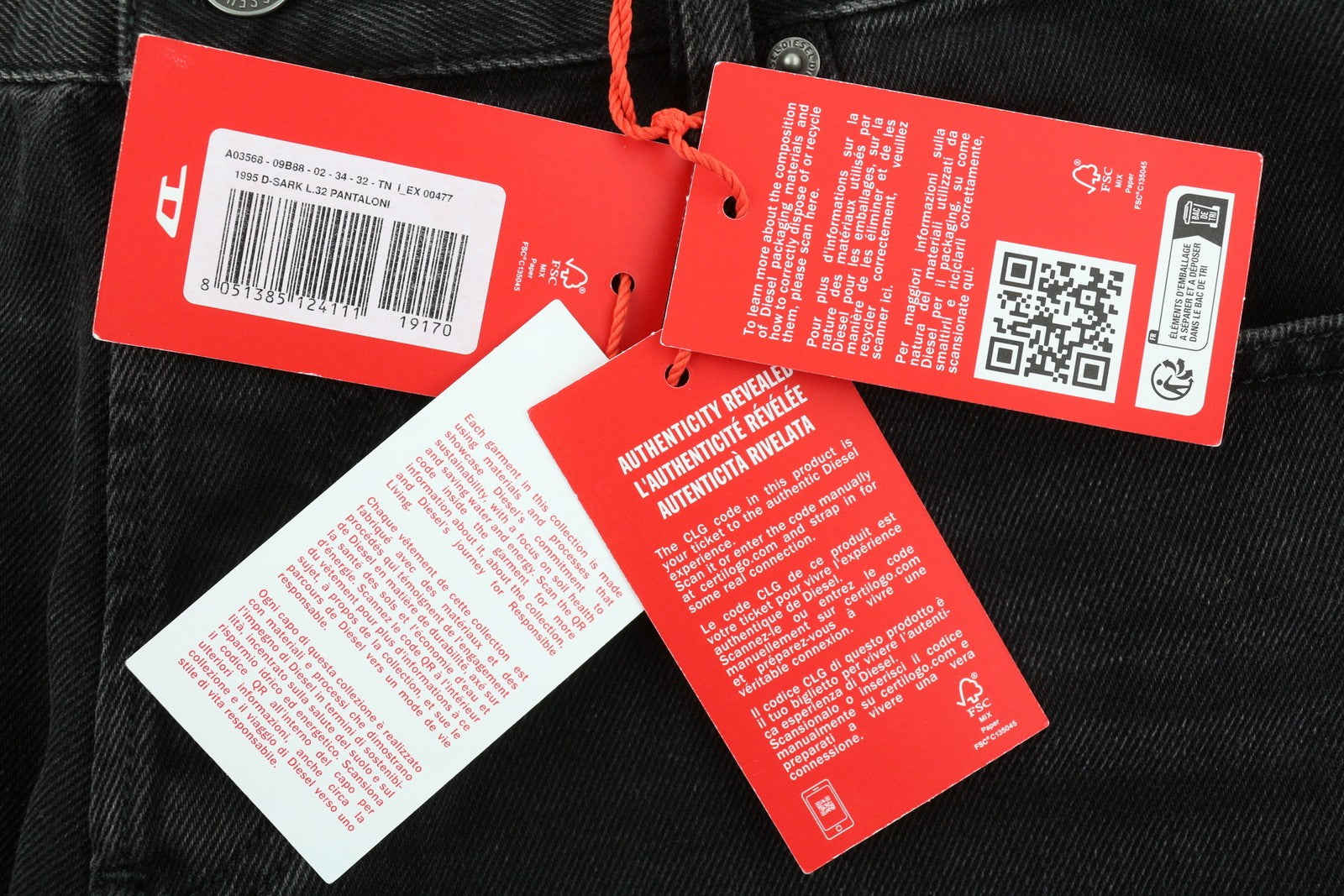 DIESEL 1995 D-Sark 09B88 vyriški džinsai W34/L32 ploni tiesūs džinsai, juodi, rekomenduojama kaina – 185 €