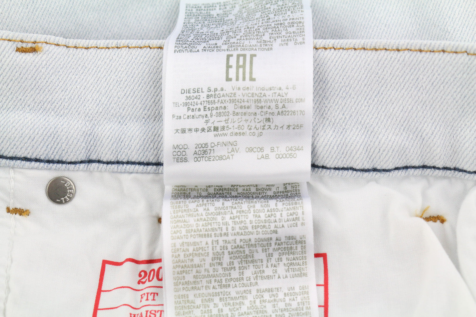 DIESEL 2005 D-Fining 09C06 vyriški džinsai W32/L32 įprasto kirpimo, siaurėjančiomis klešnėmis, vidutinio juosmens.
