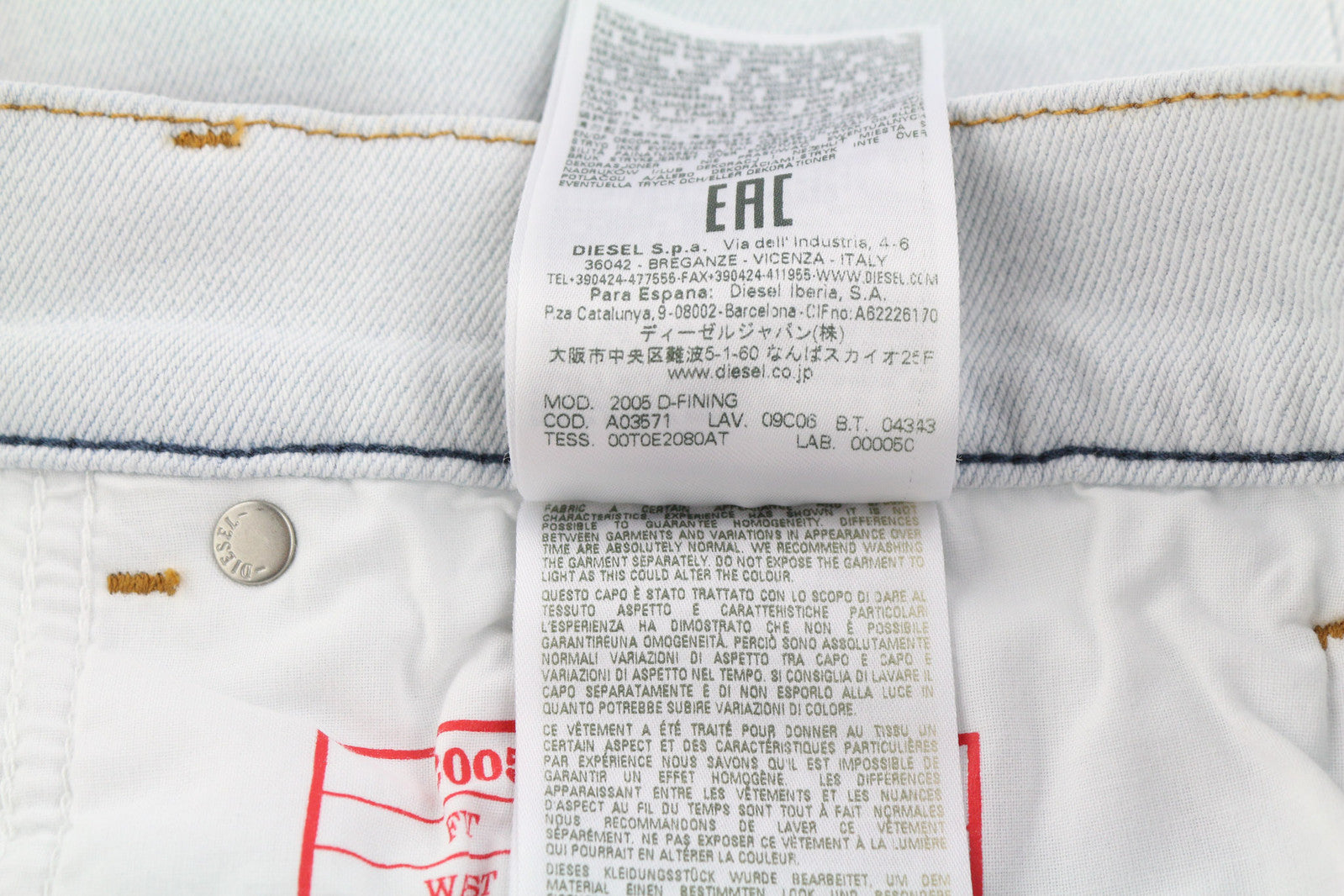 DIESEL 2005 D-Fining 09C06 vyriški džinsai W33/L32 įprasto kirpimo, siaurėjančiomis klešnėmis, vidutinio juosmens aukštyje