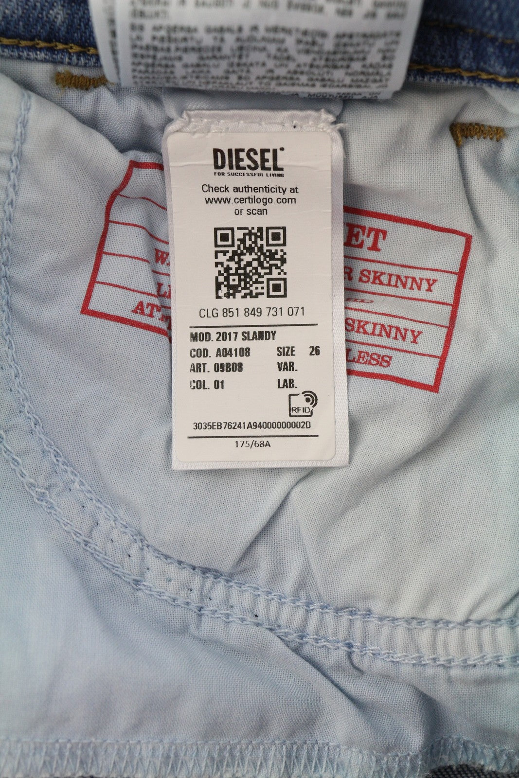 DIESEL 2017 Slandy 09B08 moteriški džinsai W26/L32 itin aptempti vidutinio juosmens, rekomenduojama kaina – 250 €