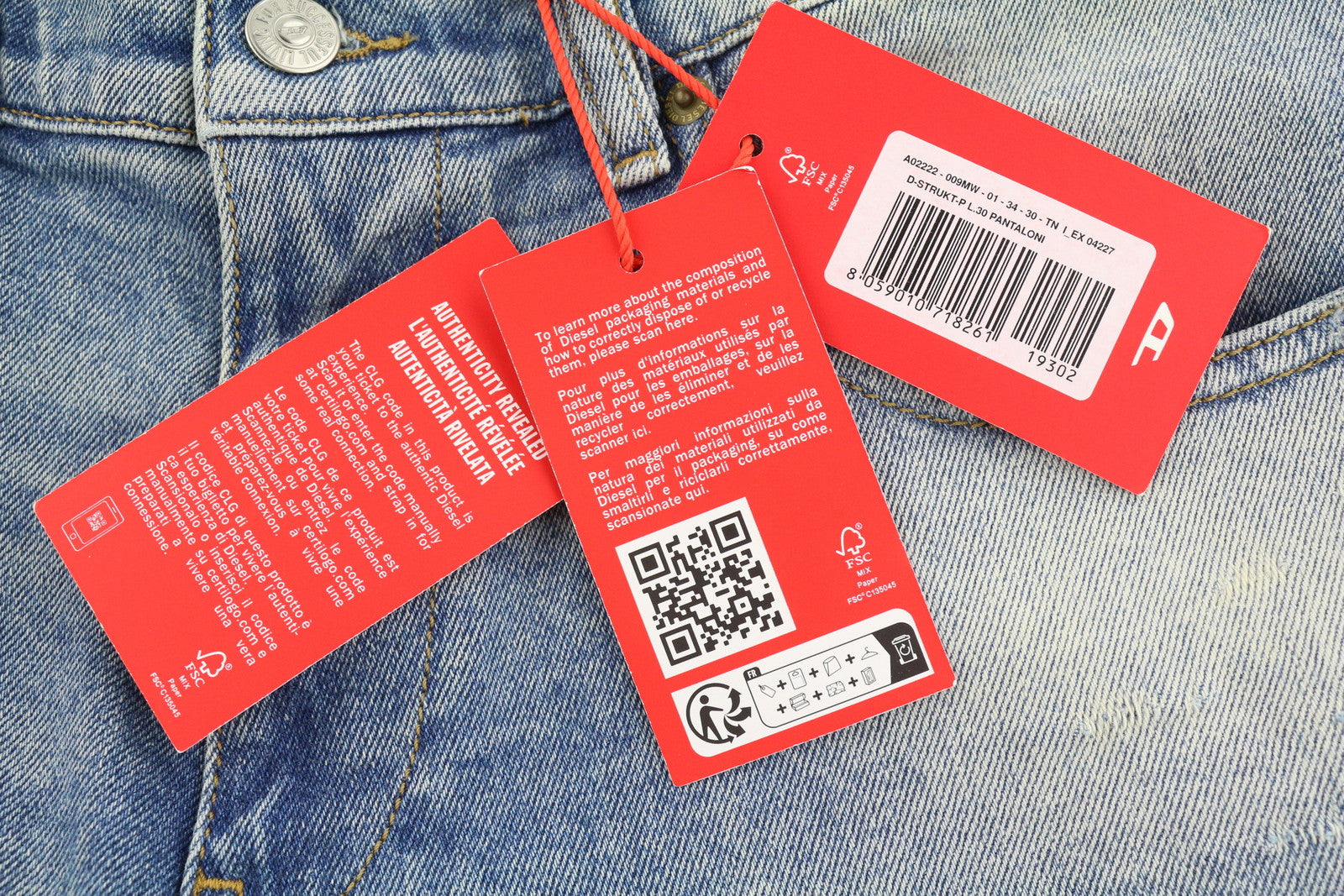 DIESEL 2019 D-Strukt 009MW vyriški džinsai W33/L30 Slim Fit vidutinio juosmens plėšyti džinsai. Rekomenduojama kaina 195 €.