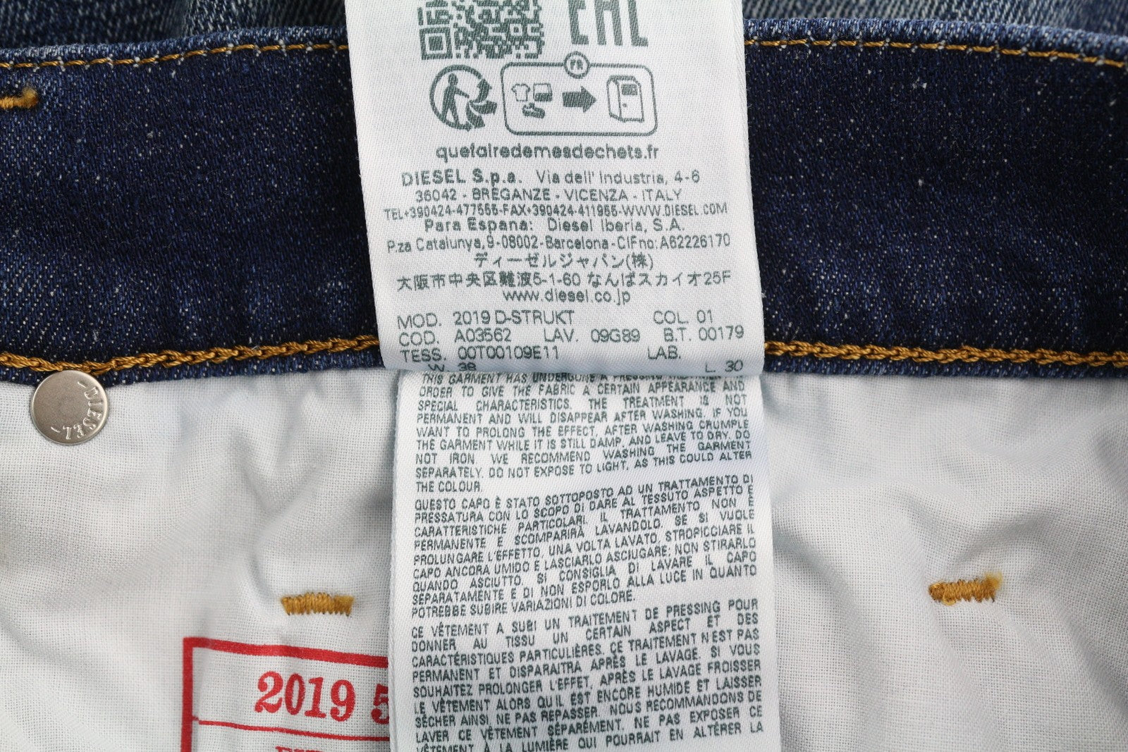 DIESEL 2019 D-Strukt 09G89 vyriški džinsai W38/L30 Slim mėlyni plėšyti džinsai RMK 325 €