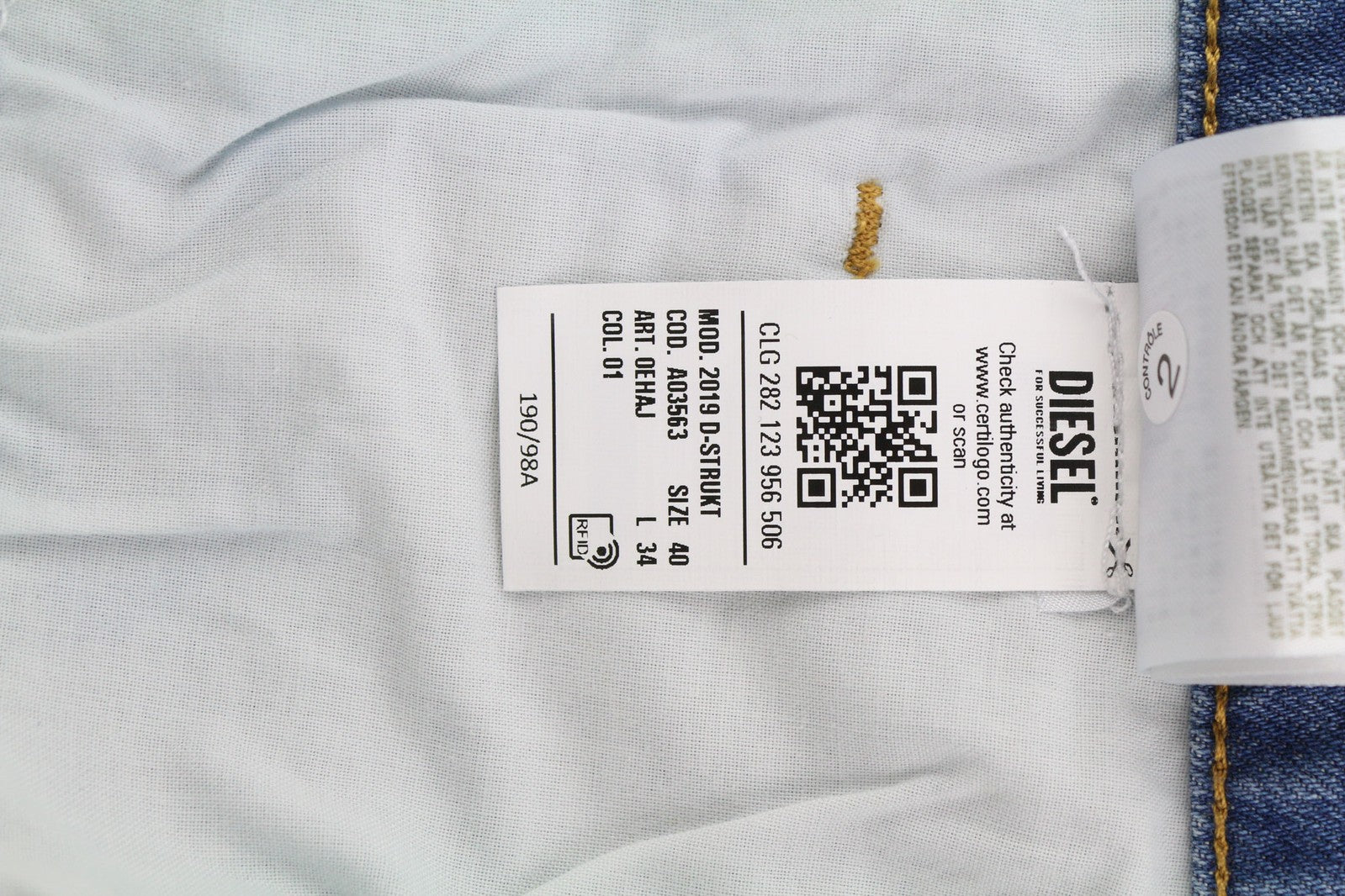 DIESEL 2019 D-Strukt 0EHAJ vyriški džinsai W40/L34 vidutinio juosmens, ploni, skalbtos mėlynos spalvos