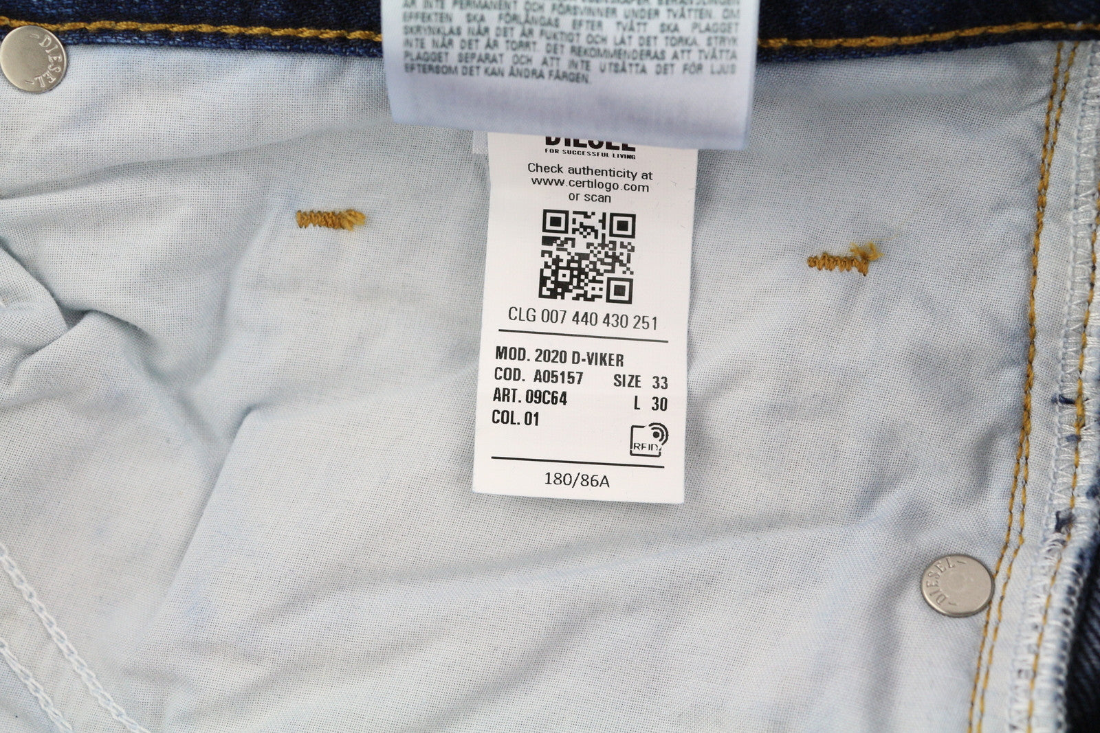 DIESEL 2020 D-Viker 09C64 vyriški džinsai W33/L30 įprasto kirpimo tiesaus kirpimo, rekomenduojama kaina – 225 €