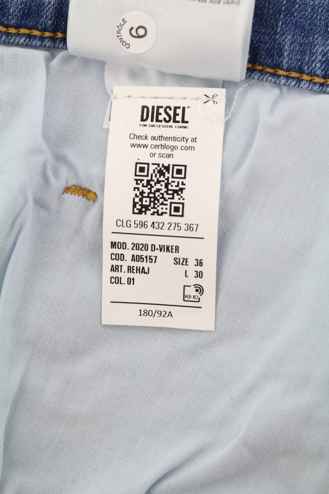 DIESEL 2020 D-Viker REHAJ Men's Jeans W36/L30 Mid Waist Straight Denim Fit