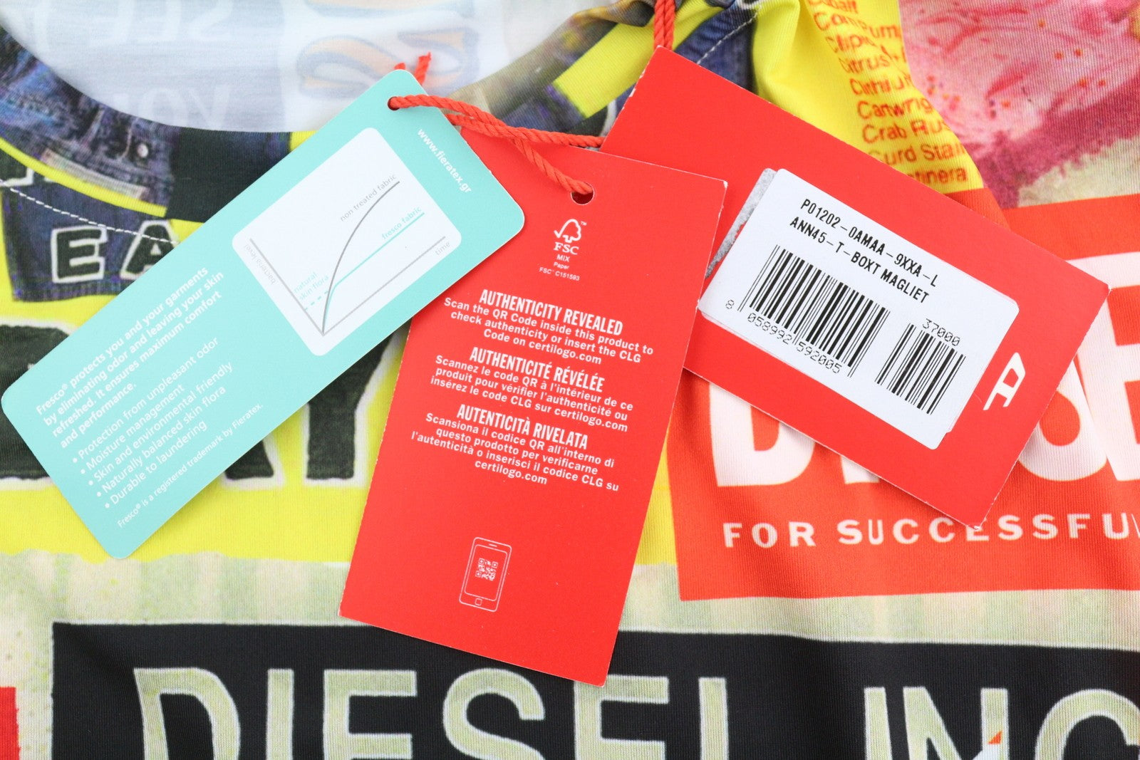 DIESEL Ann45-T-Boxt vyriški marškinėliai L 125 € 125 € spalvingais raštuotais kakleliu*