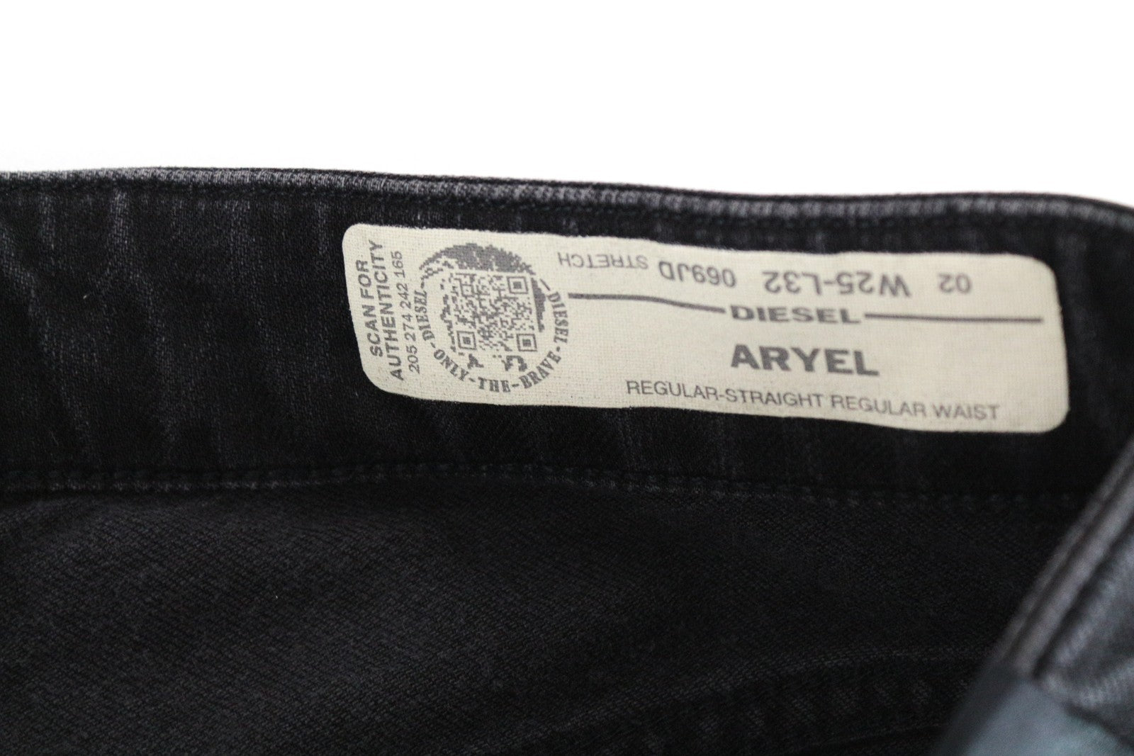 DIESEL Aryel 069JD moteriški džinsai W25/L32 Įprasti tiesūs dengti juodi tamprūs džinsai