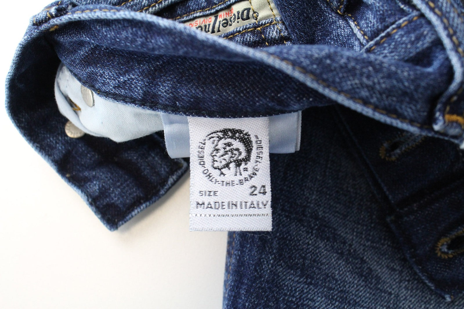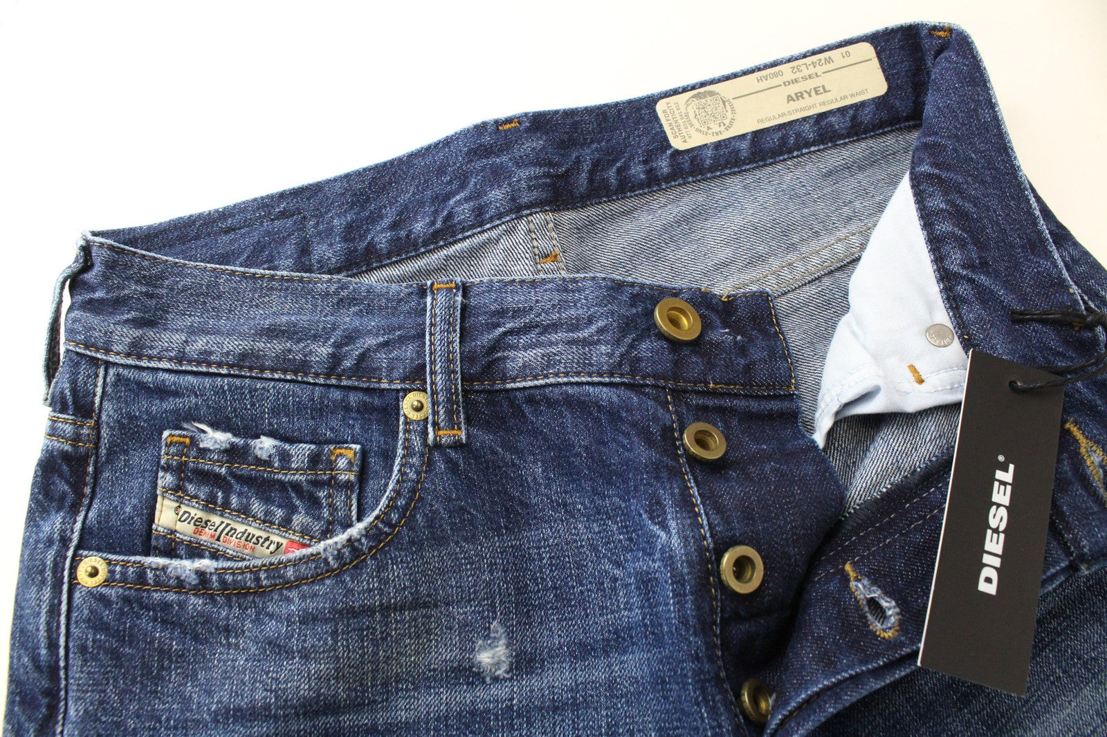 DIESEL Aryel 080AH Women's W24/L32 Jeans Straight Blue Pure Cotton Ripped Girls