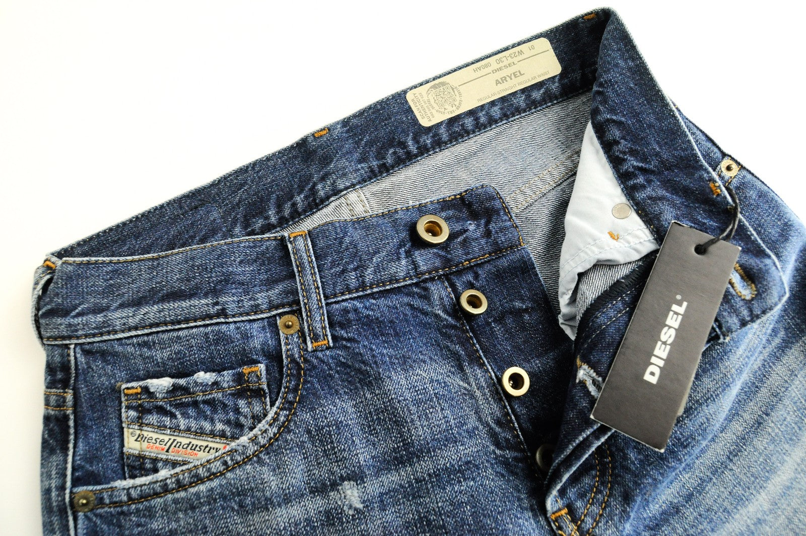 DIESEL Aryel 080AH moteriški džinsai W23 L30 plėšyti mėlyni sendinto audinio tiesūs