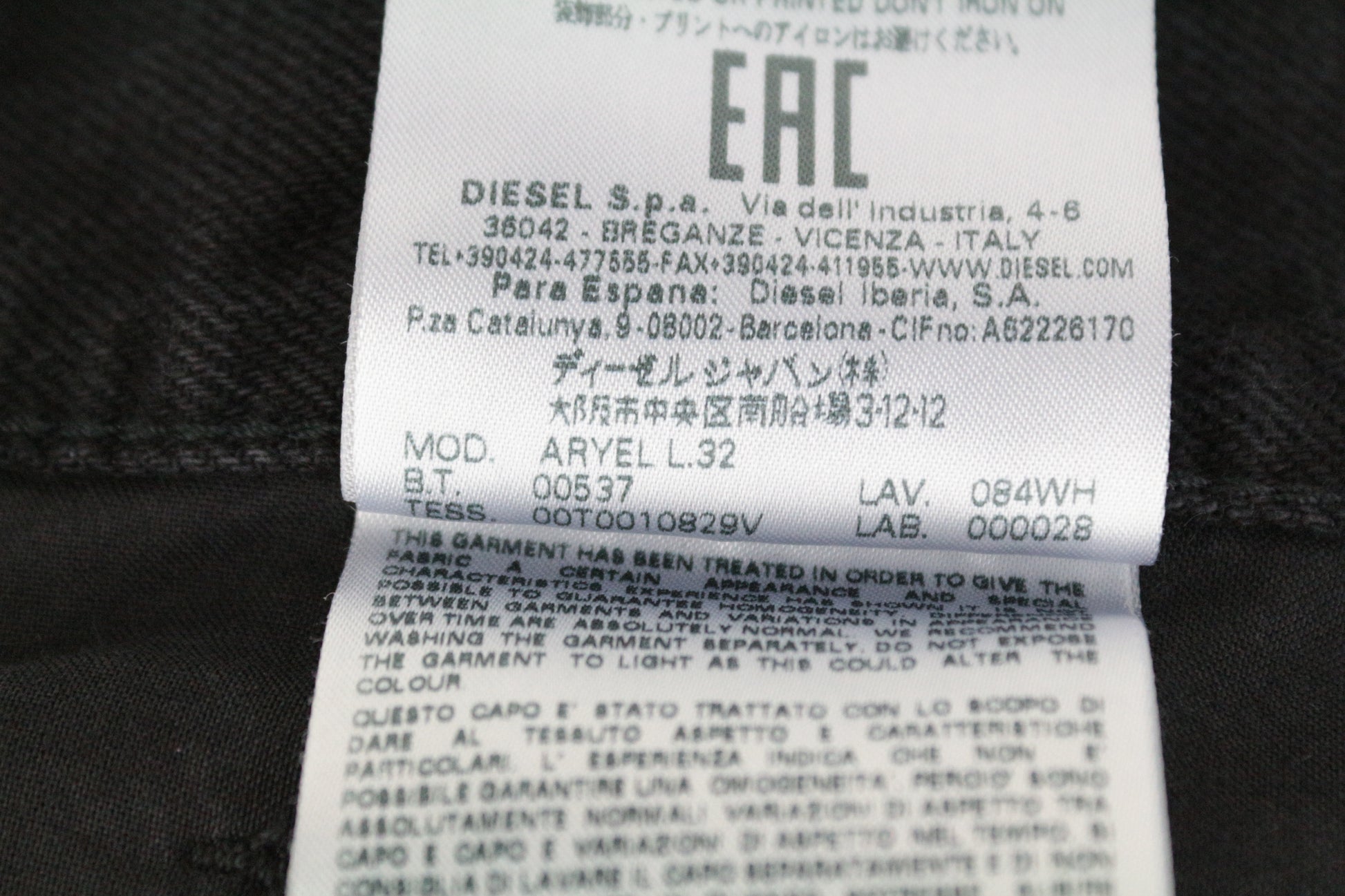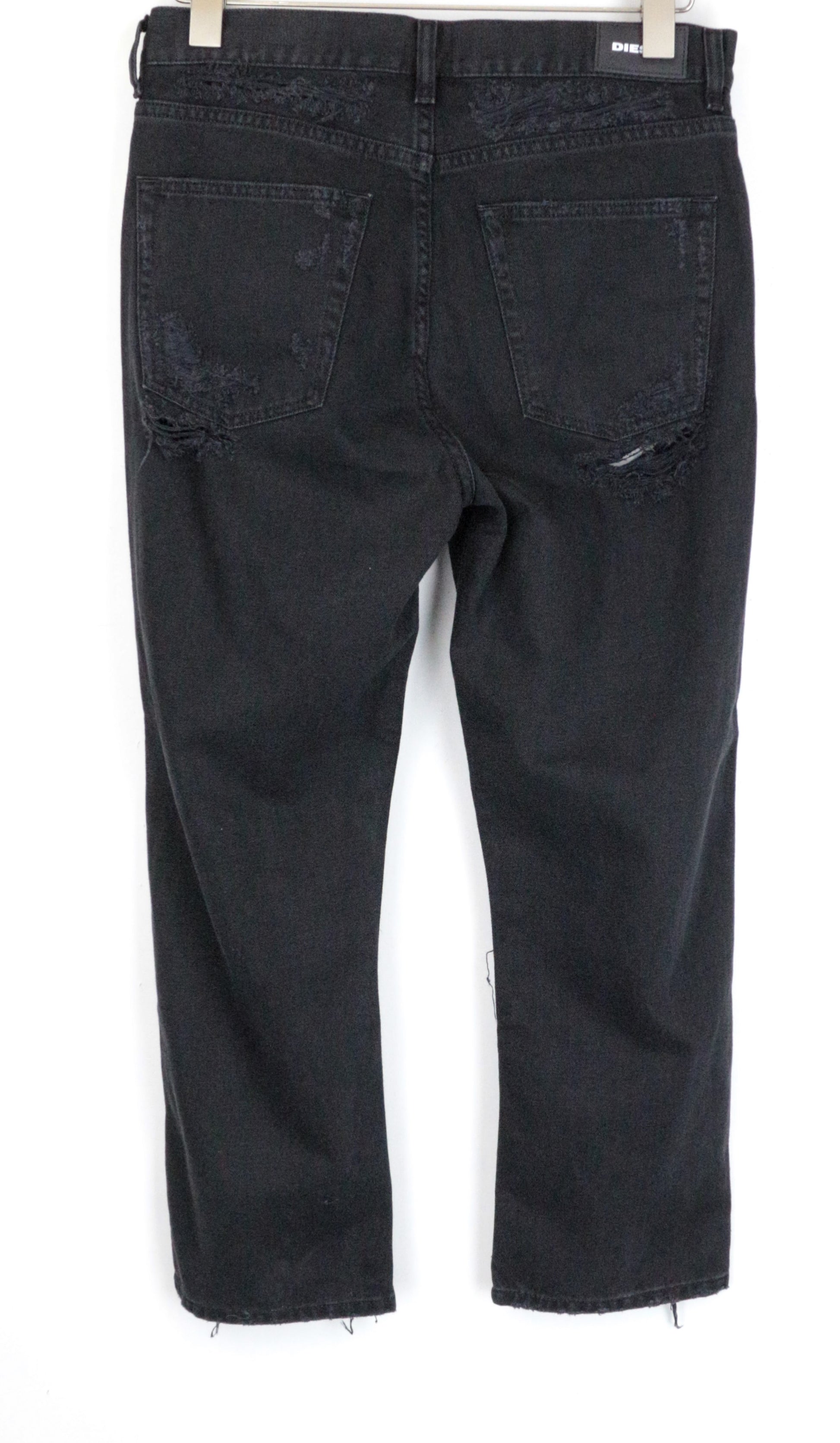 DIESEL Aryel 084WH moteriški džinsai W27/L32 tiesaus kirpimo, juodi, plėšyti medvilniniai
