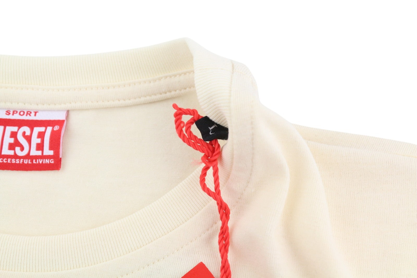 DIESEL Awtee-Raiseey-HT31 vyriški marškinėliai L dydžio, dramblio kaulo spalvos, 55DSL, trumpomis rankovėmis, trikotažiniai
