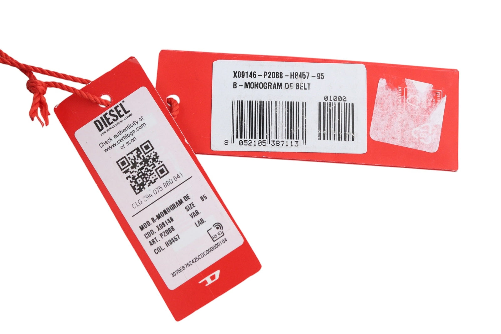DIESEL B-Monogram vyriškas diržas, 95 cm, mėlynai raudonas, odinis, džinsinio rašto, laisvalaikio stiliaus, rekomenduojama kaina – 150 €