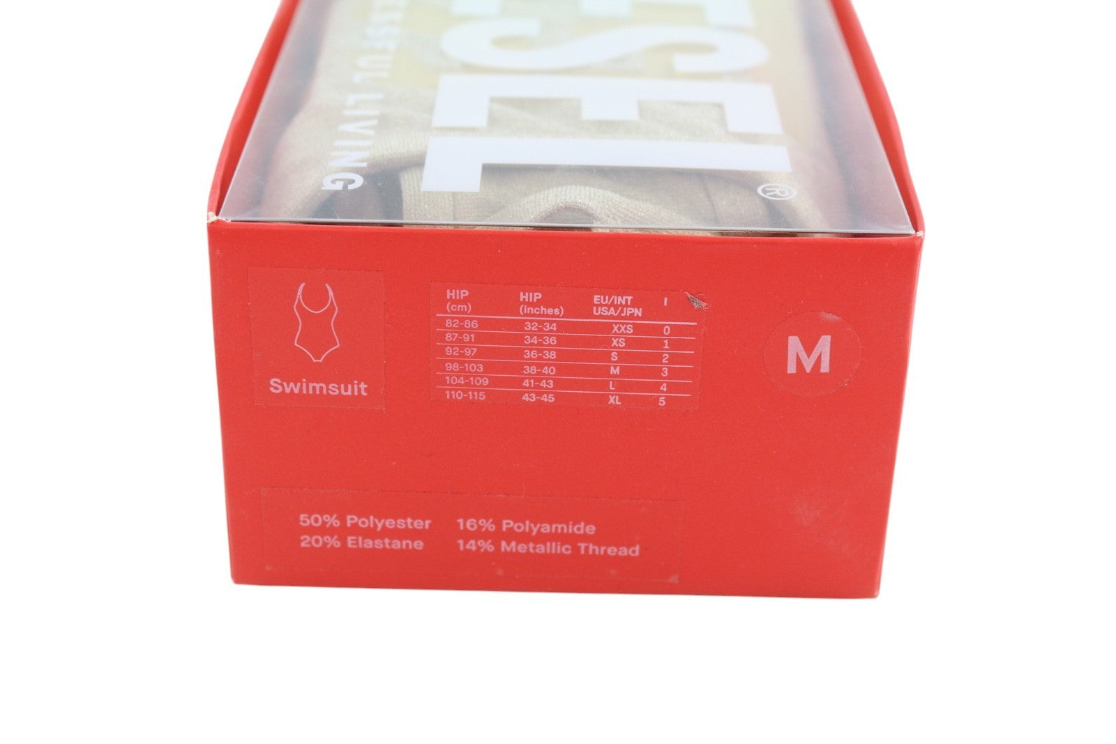 DIESEL Bfsw-Gretel moteriškas maudymosi kostiumėlis M, vientisas, RRP 110 €, tamprus, blizgučiais smėlinis