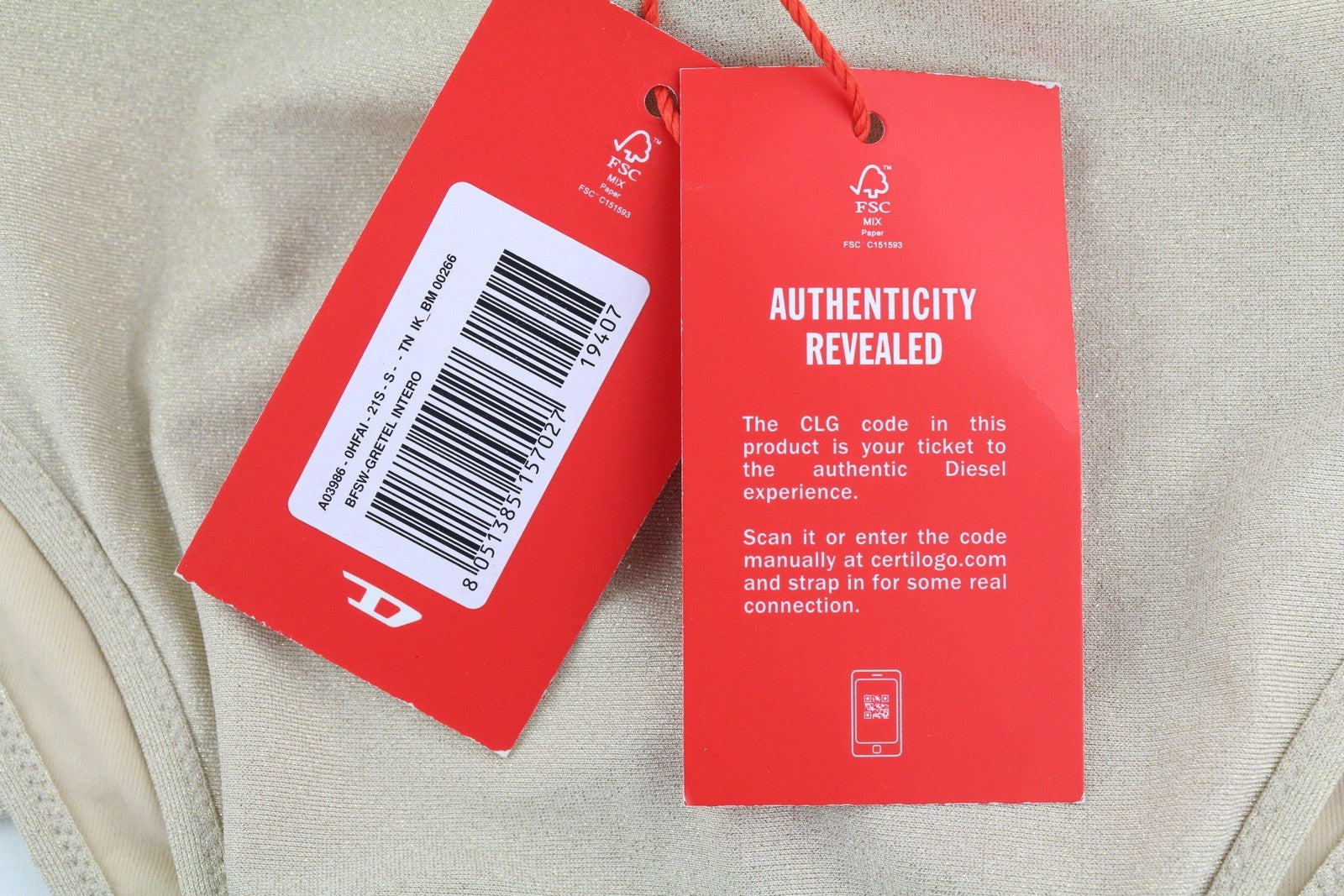 DIESEL Bfsw-Gretel moteriškas maudymosi kostiumėlis S, vientisas, RRP 110 €, tamprus, blizgučiais smėlinis