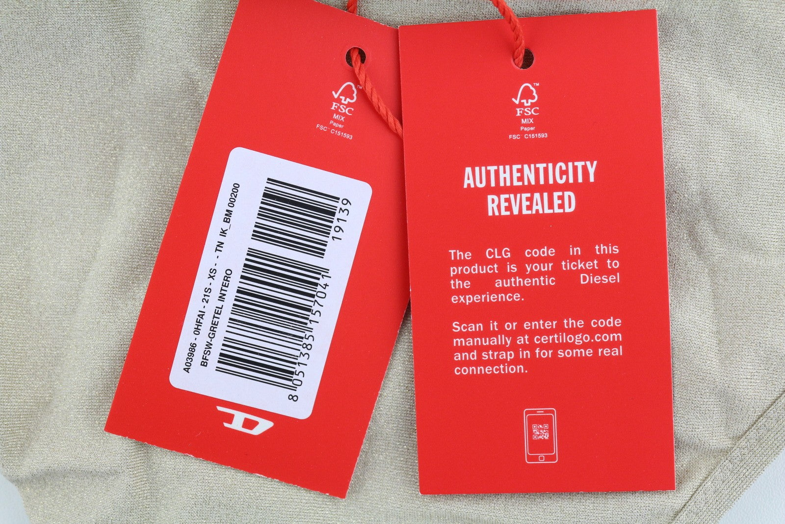 DIESEL Bfsw-Gretel moteriškas maudymosi kostiumėlis XS, vientisas, RRP 110 €, tamprus, blizgučiais gelsvas