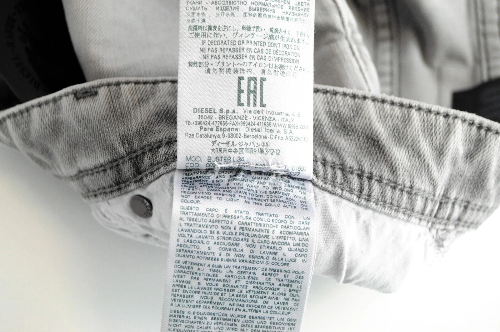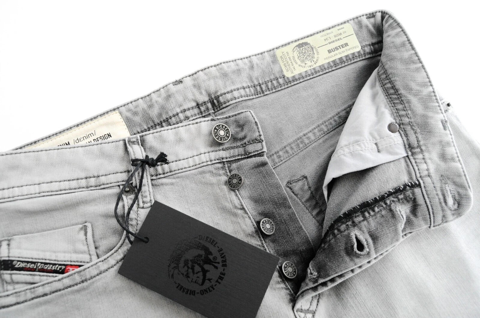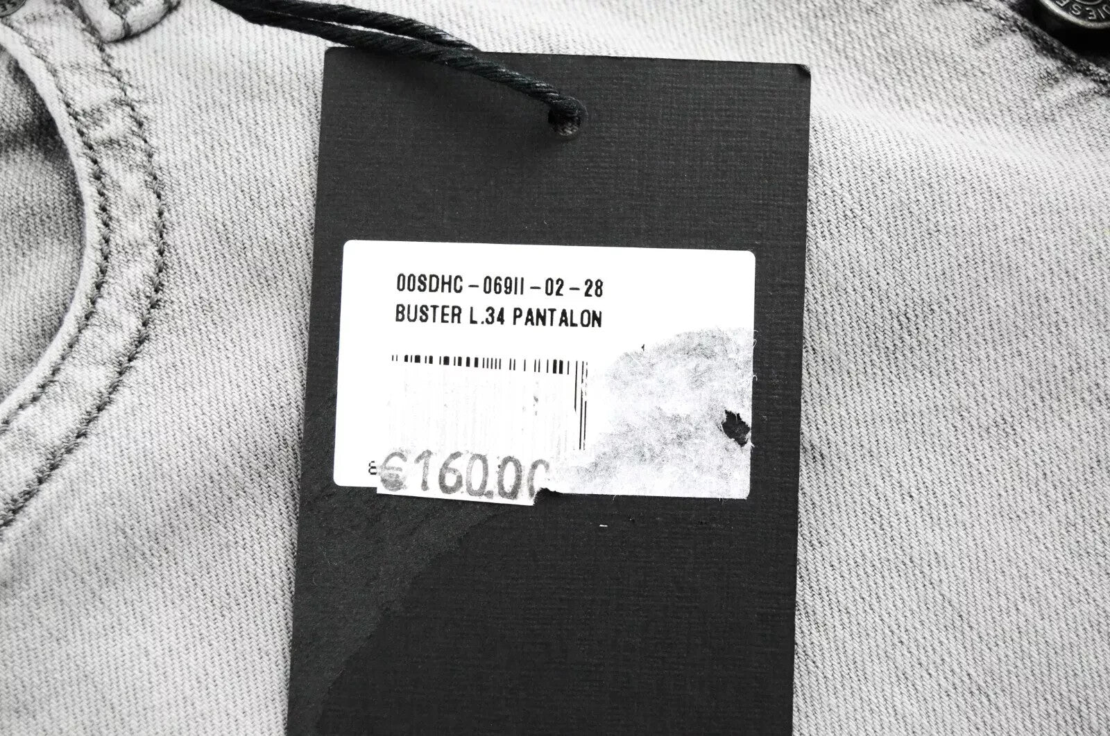 DIESEL Buster 069II vyriški ploni siaurėjantys džinsai, W28 L34, pilki, medvilniniai, šviesiai skalbti