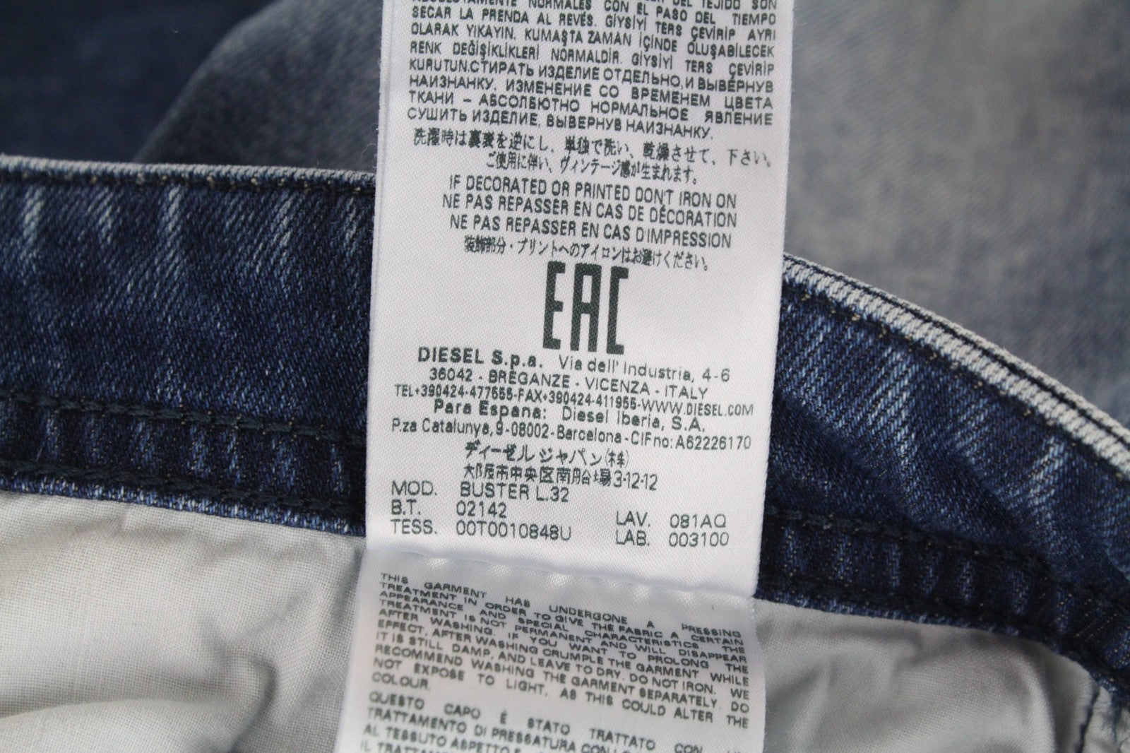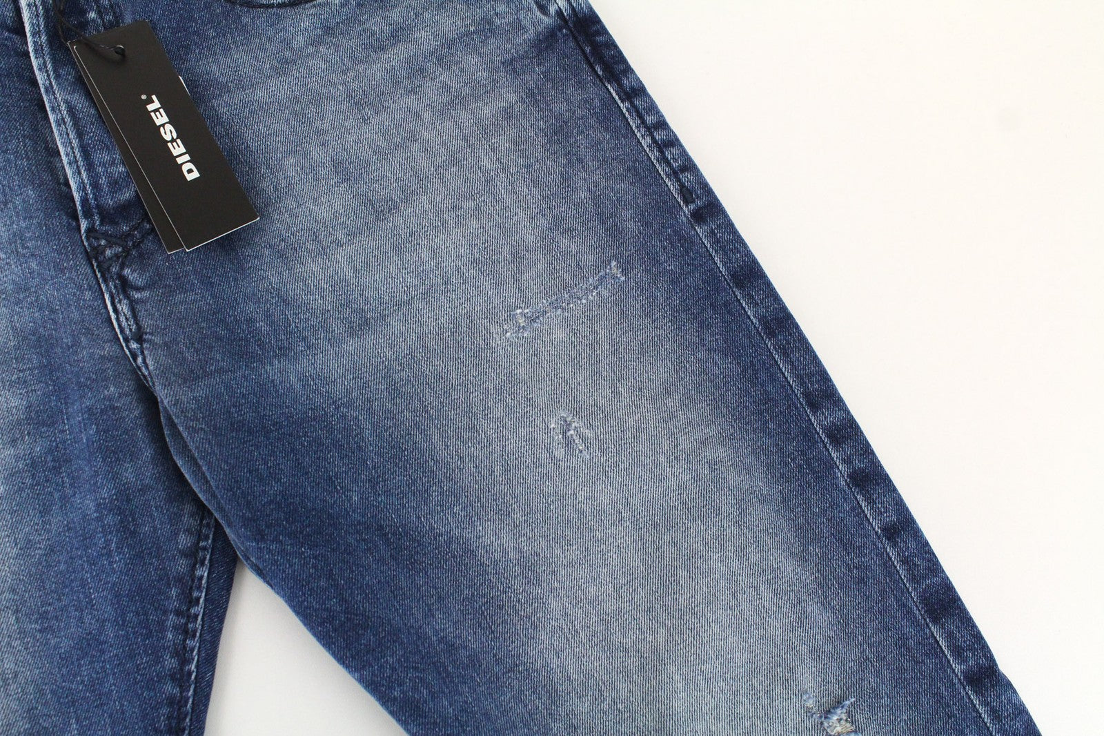 DIESEL Buster 081AQ vyriški džinsai W29/L32 mėlyni, ploni, siaurėjantys, su dirbtiniais dryžiais