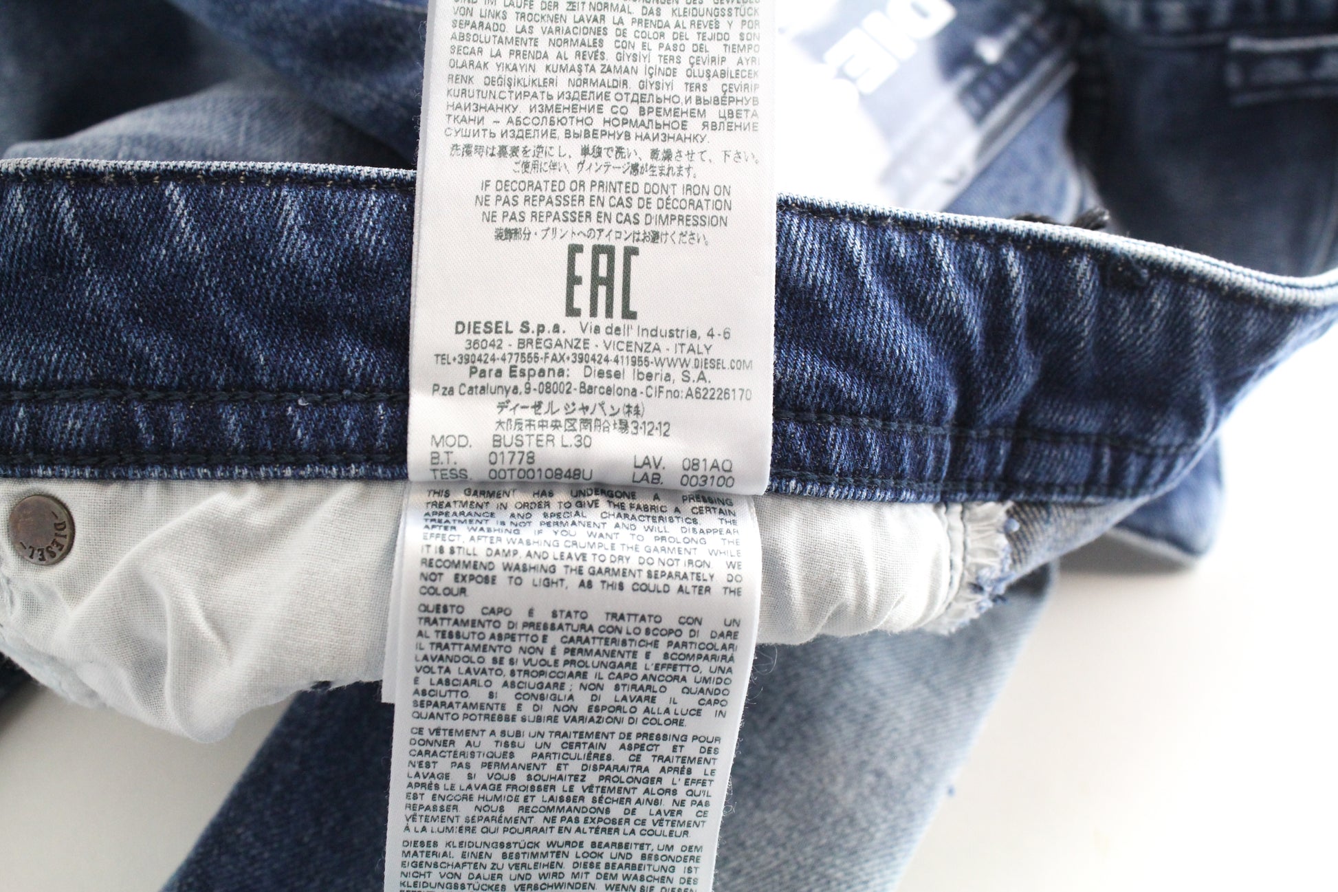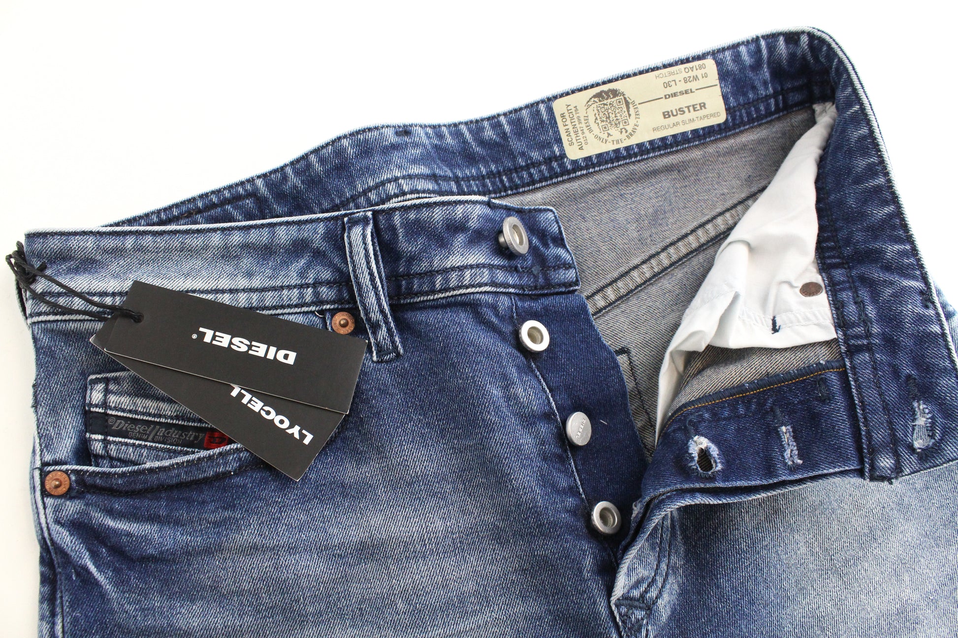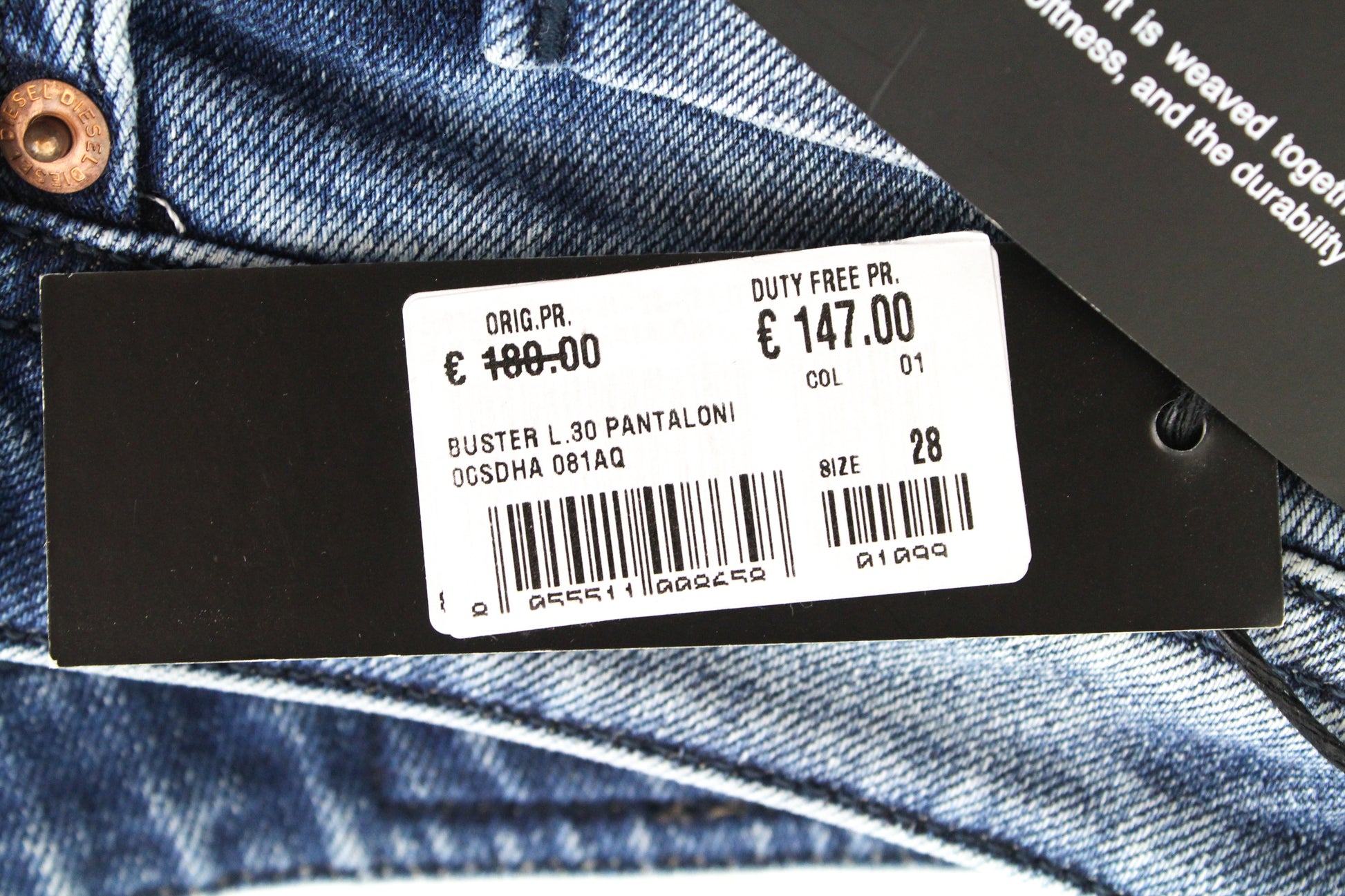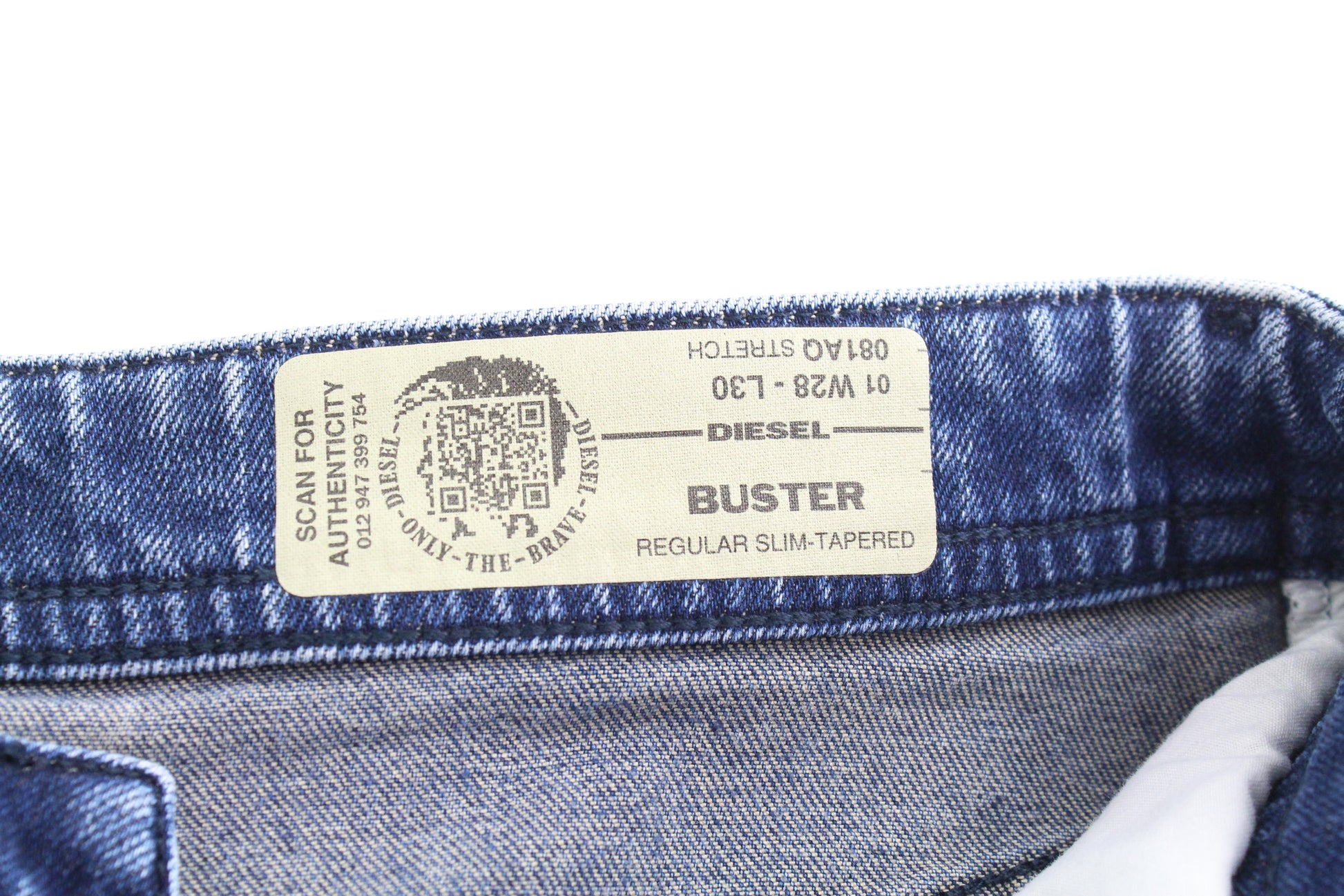 DIESEL Buster 081AQ vyriški W28 L30 džinsai mėlyni, siaurėjantys, ploni, tamprūs medvilniniai džinsai