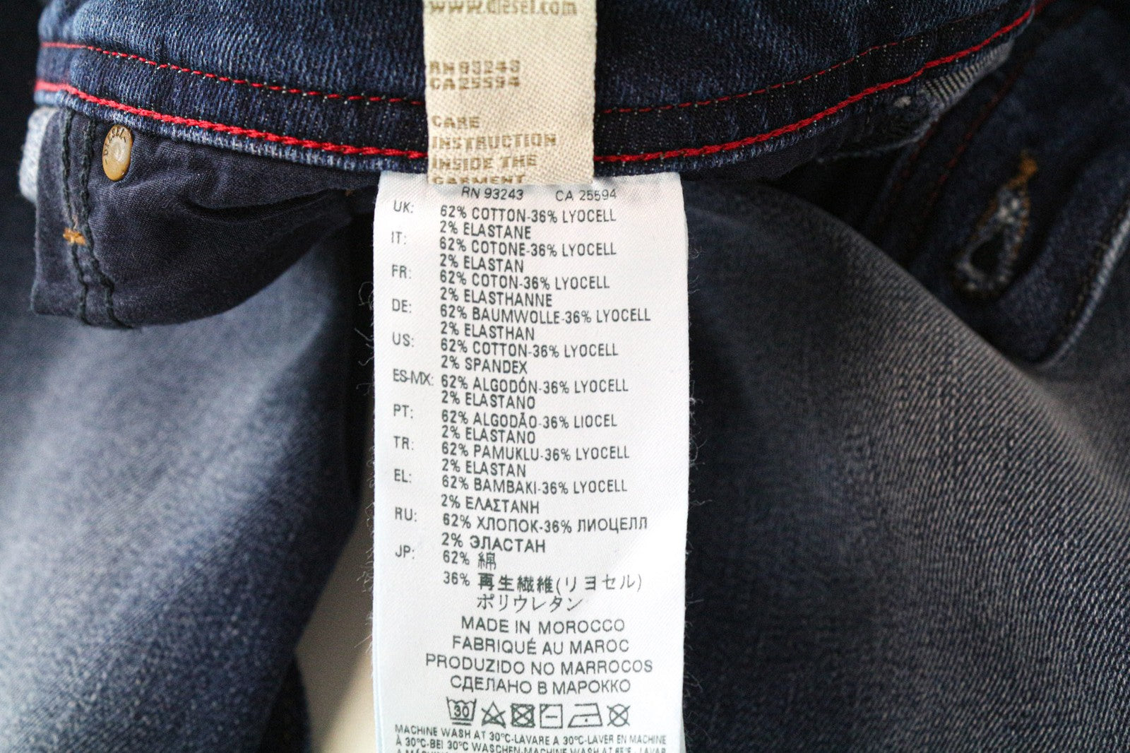 DIESEL Buster 084NS vyriški džinsai W28/L32 Slim Tapered, skalbtos mėlynos spalvos, tamprūs