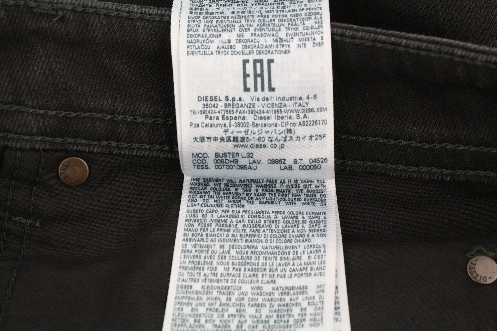 DIESEL Buster 0886Z vyriški džinsai W38/L32 Regular Slim Tapered Fit su sagomis, tamsūs