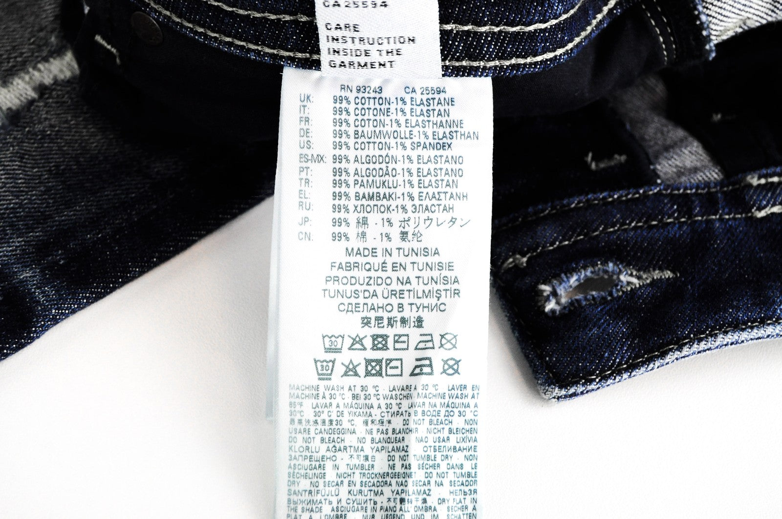 DIESEL Buster R9K03 vyriški mėlyni džinsai W28/L32 Slim Tapered Stained Distressed