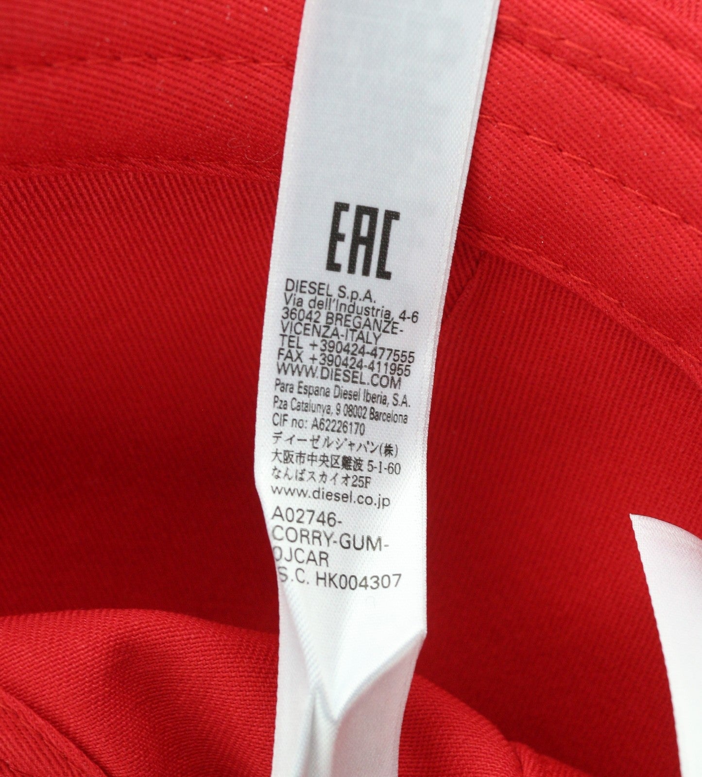 DIESEL Corry-Gum vyriška kepurė OS raudona beisbolo medvilnė visiems metų laikams logotipas laisvalaikio unisex