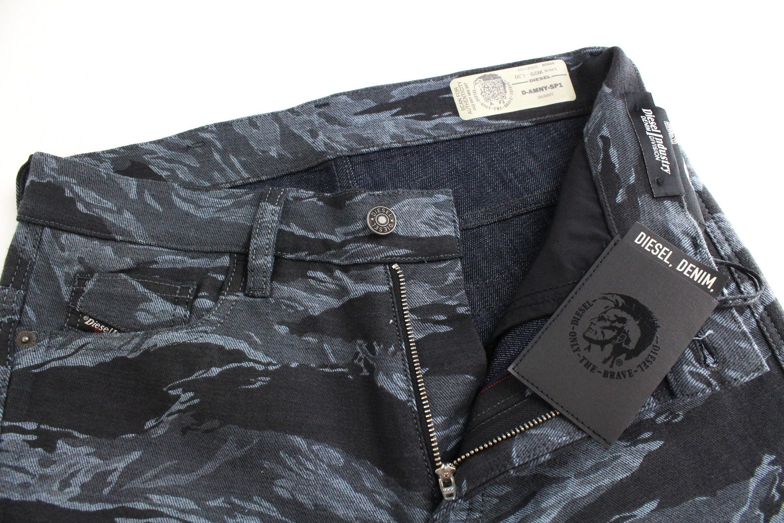 DIESEL D-Amny-SP1 0091R vyriški džinsai W32/L32 aptempti, mėlyni, tamprūs raštai
