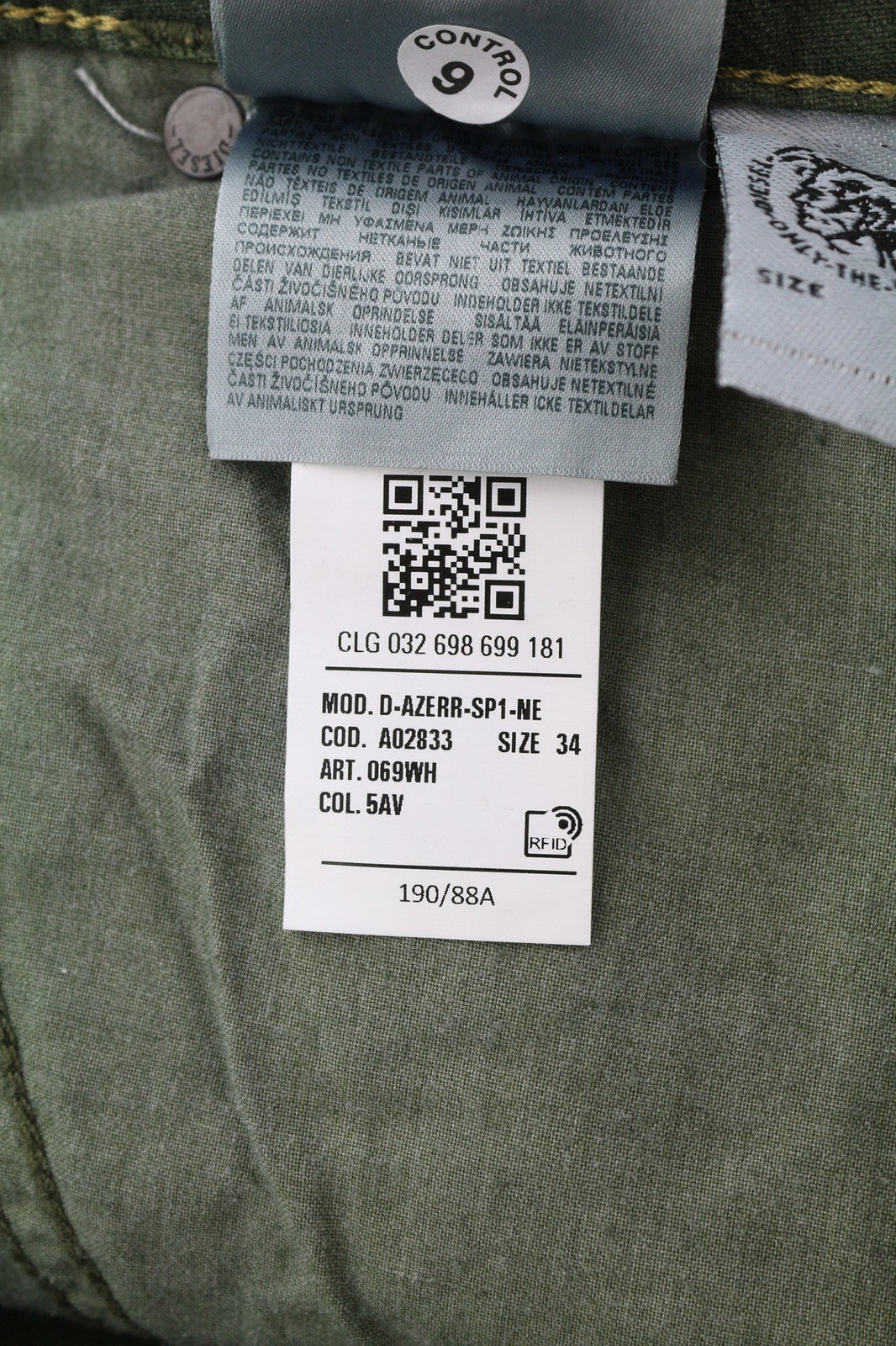 DIESEL D-Azerr Jogg 069WH vyriški džinsai W34 tiesūs, tamprūs, skalbtos žalios spalvos, rekomenduojama kaina – 250 €