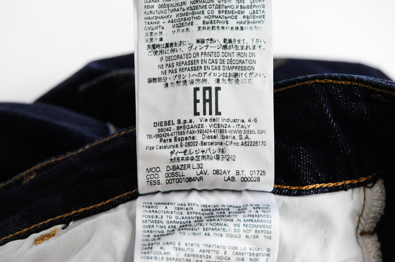 DIESEL D-Bazer 082AY vyriški mėlyni džinsai W27/L32 siaurėjantys, išplauti su sagomis